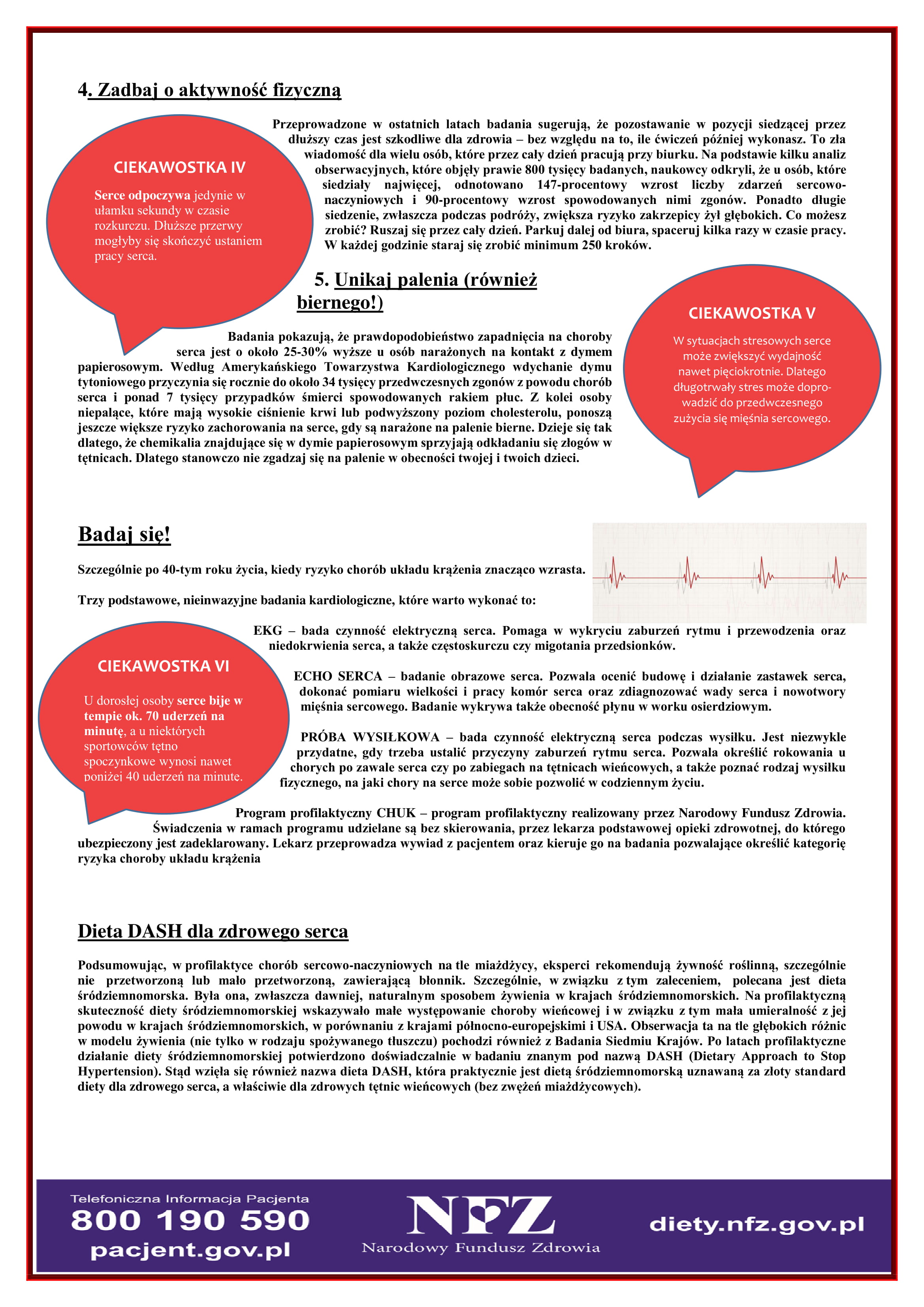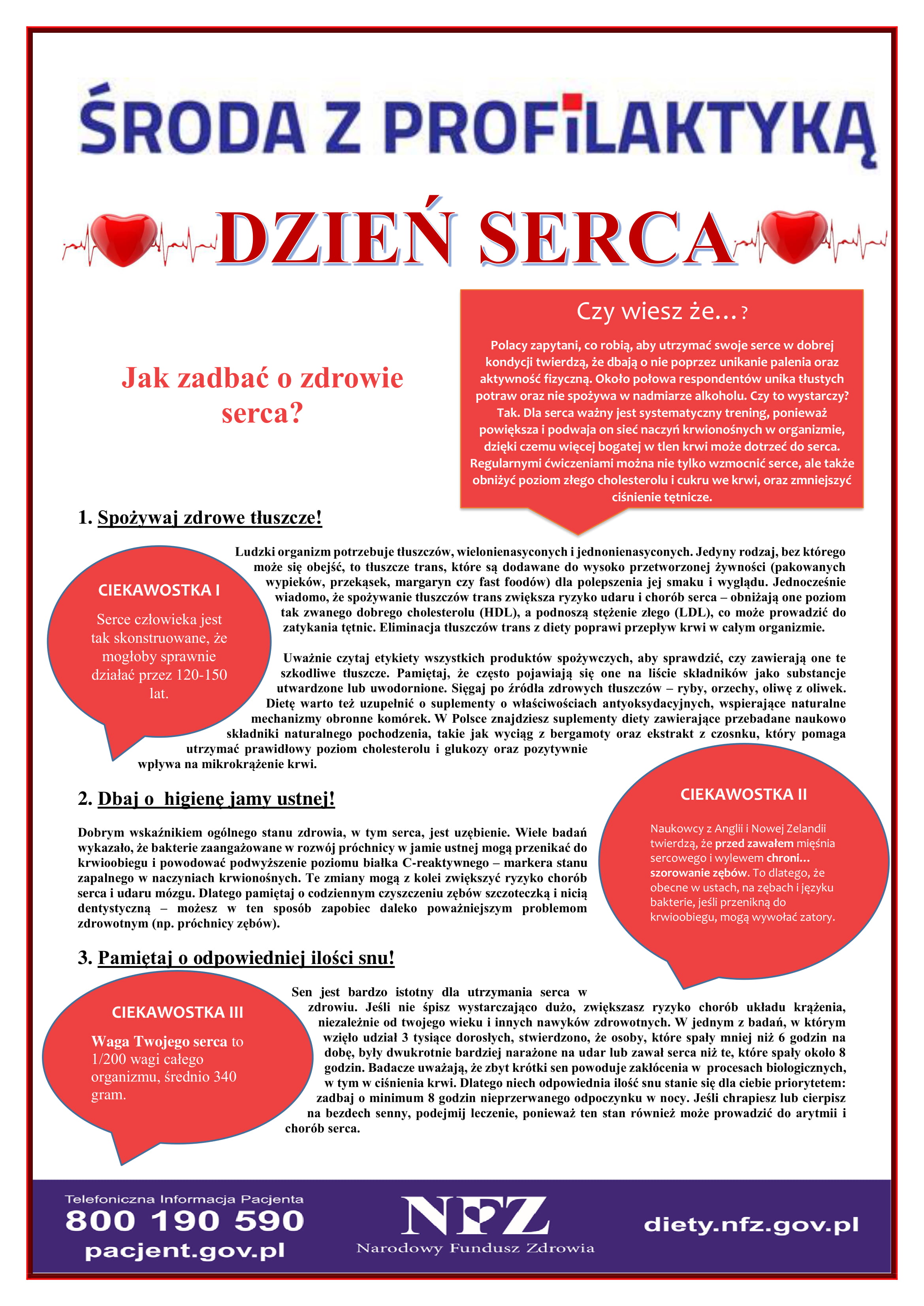 promocję zdrowego stylu życia. NFZ przypomina, jak zadbać o swoje serce. Zapraszamy do lektury poniższej broszury oraz do zapoznania się z materiałem filmowym na kanale Akademia NFZ na youtube