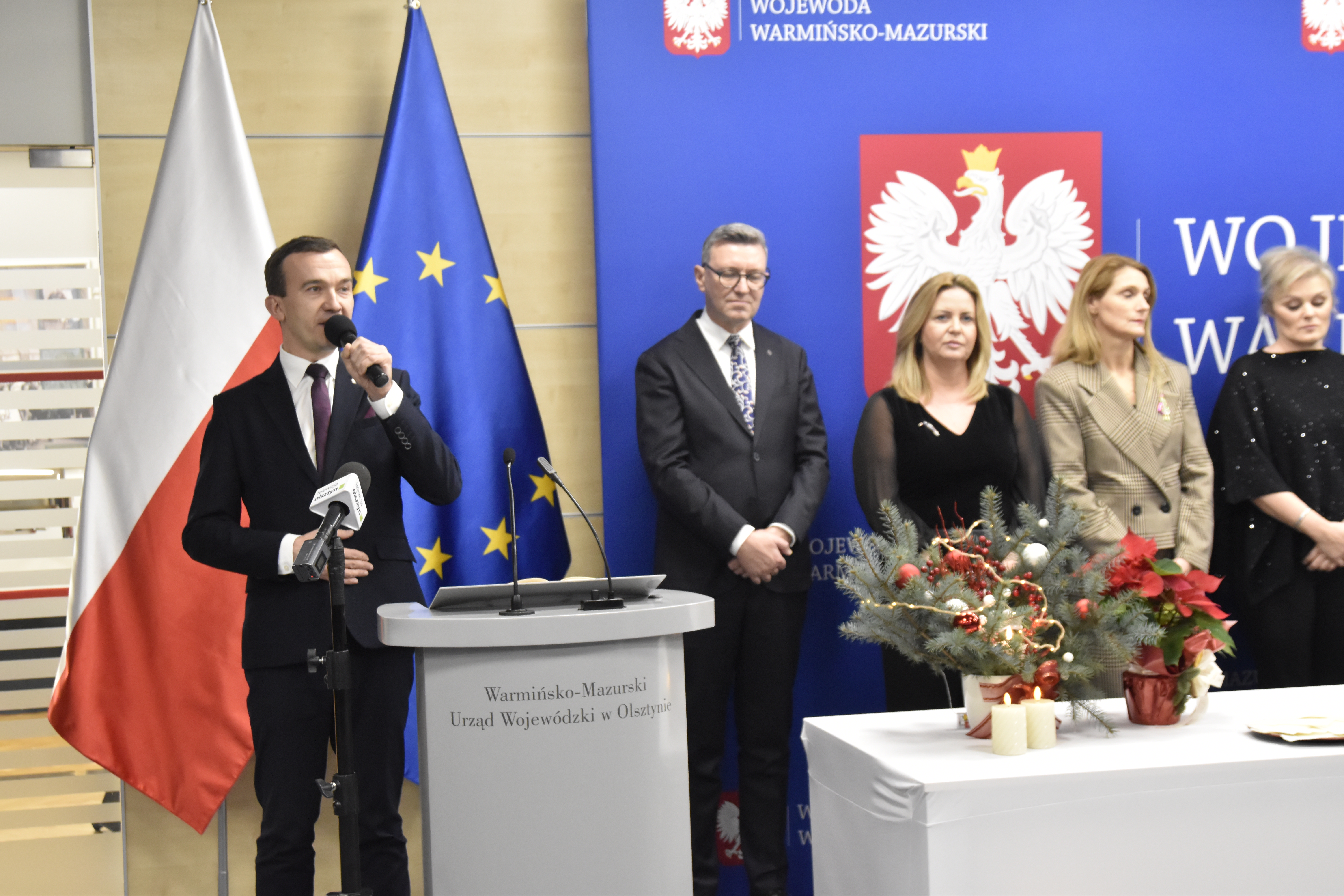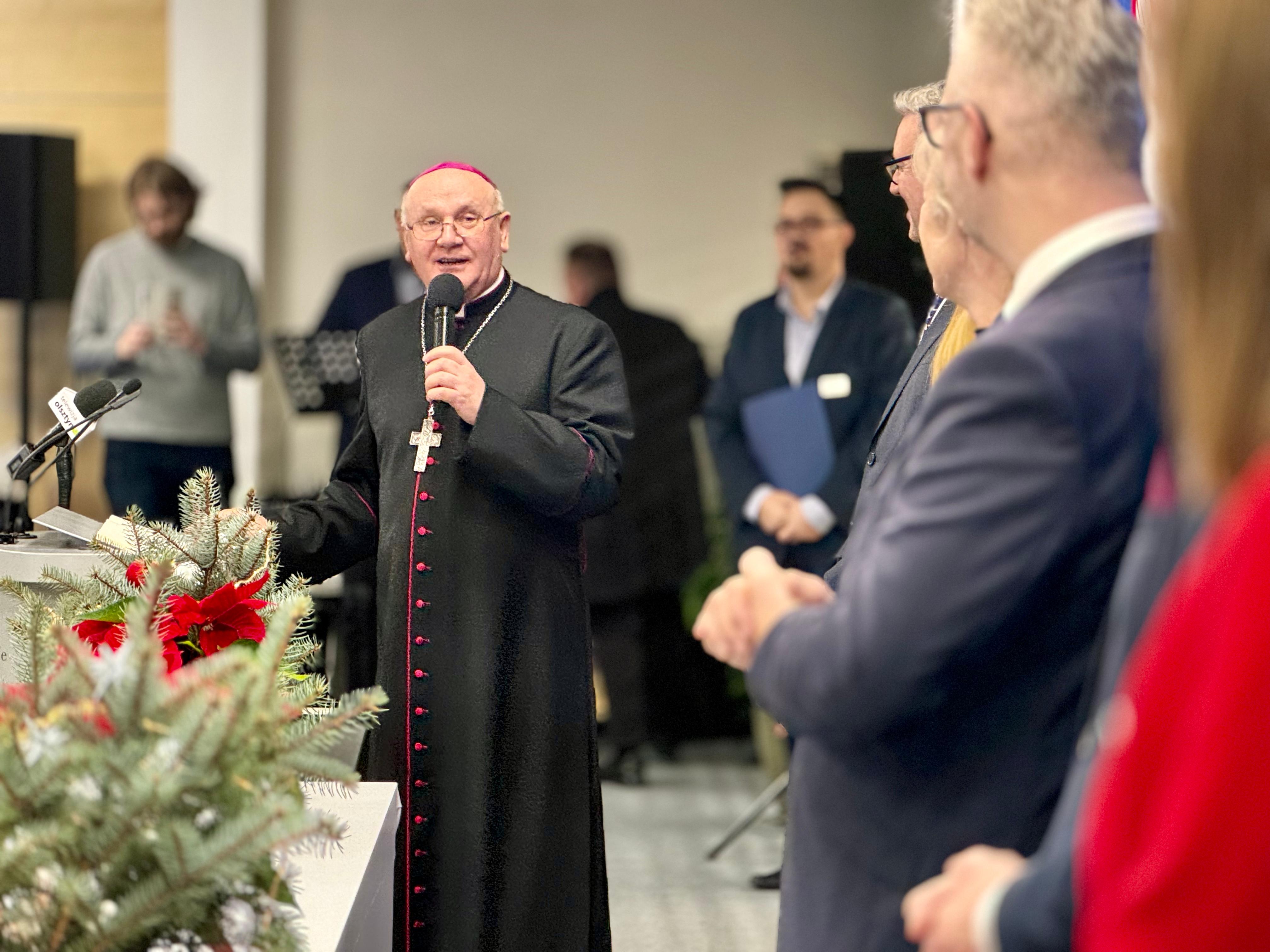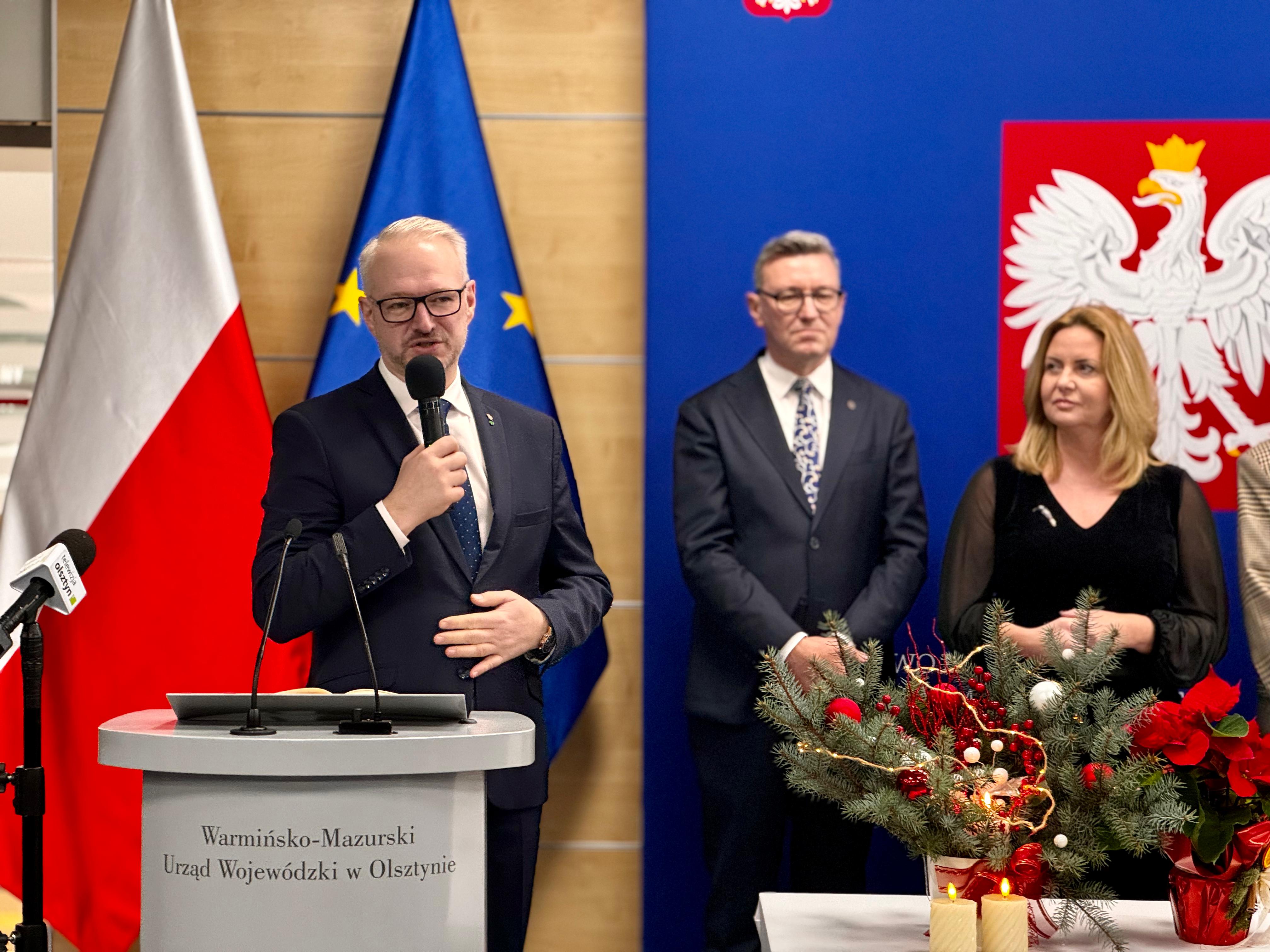 Okres Świąt Bożego Narodzenia oraz początek Nowego Roku stanowi sposobny czas dzielenia się opłatkiem oraz składania sobie przy tej okazji serdecznych życzeń. Tak było dzisiaj w Warmińsko-Mazurskim Urzędzie Wojewódzkim w Olsztynie, gdzie z udziałem dostojnego gościa, metropolity warmińskiego ks. abp. Józefa Górzyńskiego oraz gospodarzy - wojewody Radosława Króla, wicewojewody Mateusza Szauera i dyrektora generalnego urzędu Moniki Choroszewskiej-Pleńkowskiej, odbyła się piękna uroczystość, która połączyła pracowników urzędu na tradycyjnym wigilijnym spotkaniu.