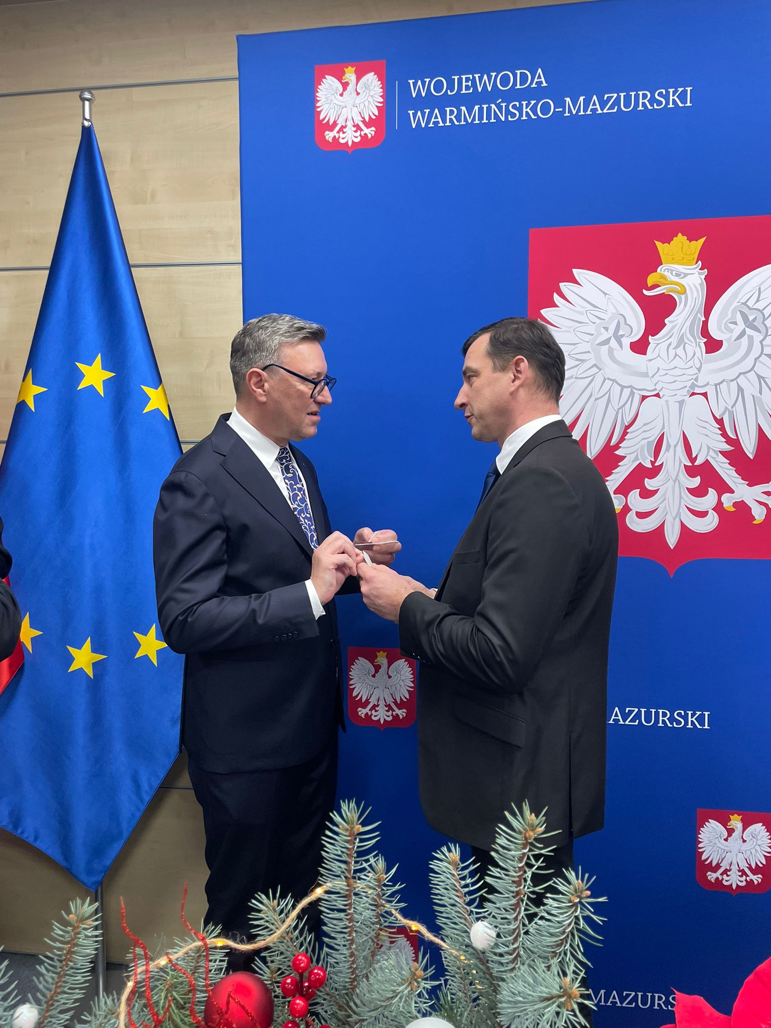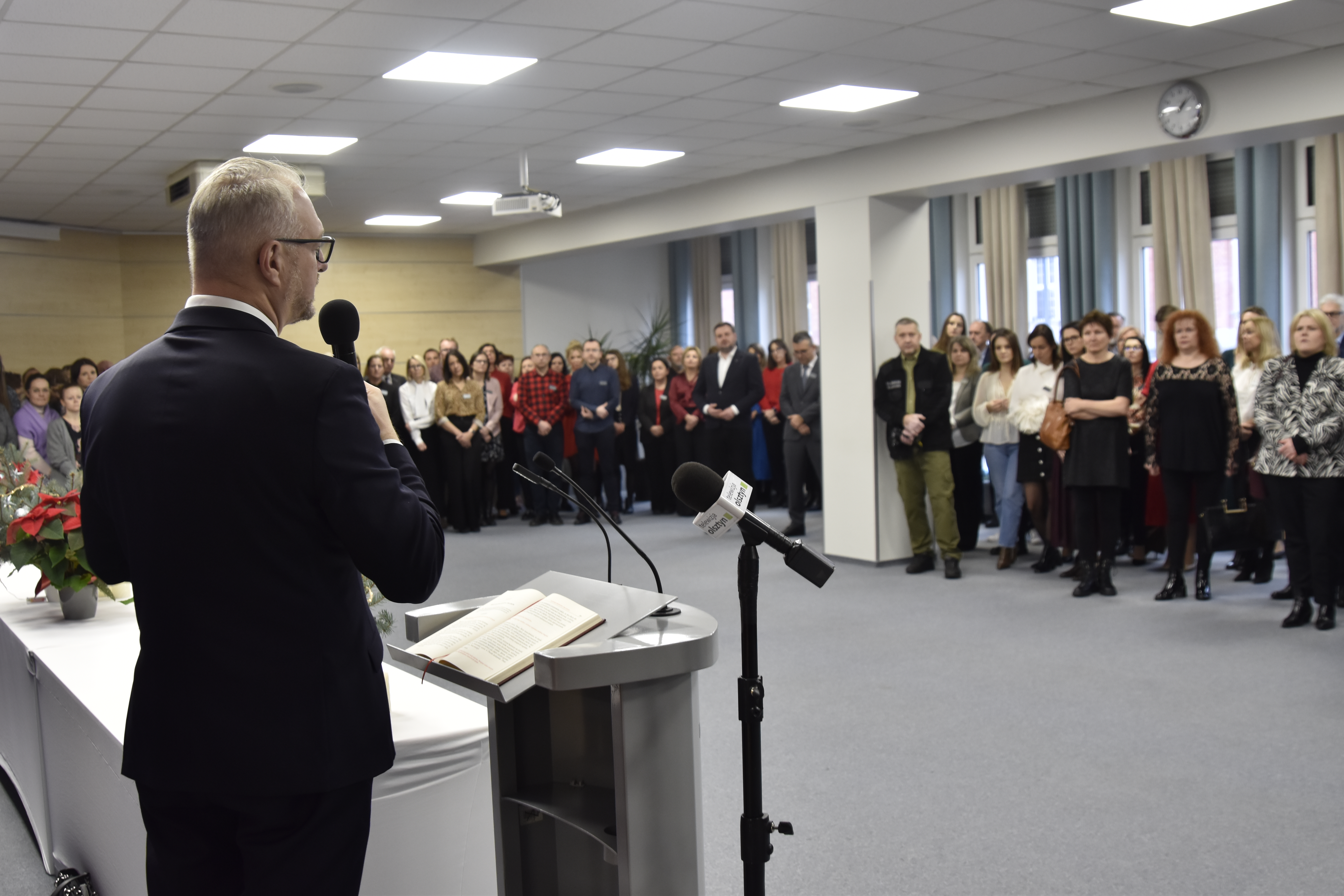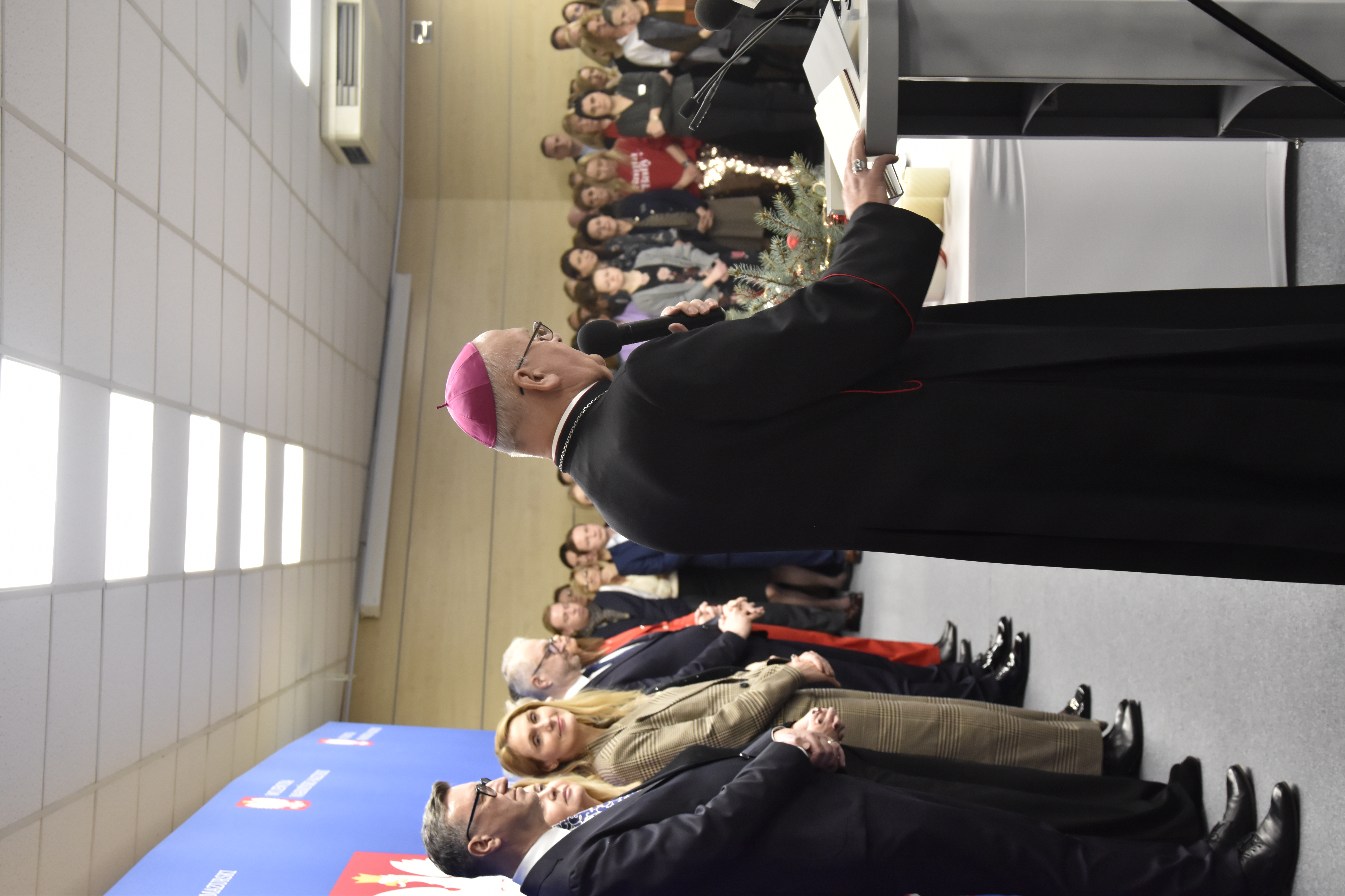 Okres Świąt Bożego Narodzenia oraz początek Nowego Roku stanowi sposobny czas dzielenia się opłatkiem oraz składania sobie przy tej okazji serdecznych życzeń. Tak było dzisiaj w Warmińsko-Mazurskim Urzędzie Wojewódzkim w Olsztynie, gdzie z udziałem dostojnego gościa, metropolity warmińskiego ks. abp. Józefa Górzyńskiego oraz gospodarzy - wojewody Radosława Króla, wicewojewody Mateusza Szauera i dyrektora generalnego urzędu Moniki Choroszewskiej-Pleńkowskiej, odbyła się piękna uroczystość, która połączyła pracowników urzędu na tradycyjnym wigilijnym spotkaniu.