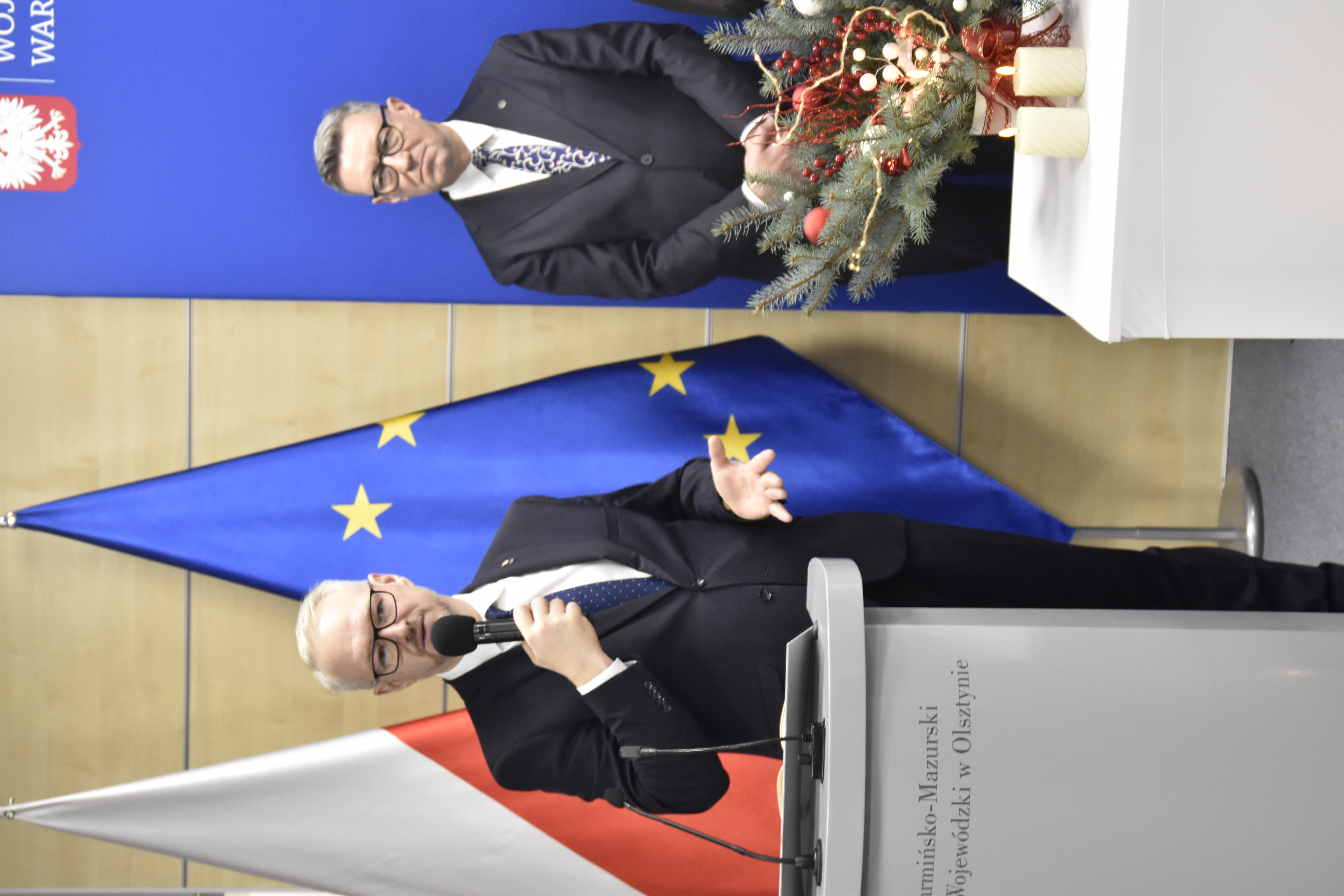 Zebrani wysłuchali pięknych i wzruszających życzeń złożonych przez wojewodę, wicewojewodę, dyrektora generalnego oraz przybyłych gości. Metropolita warmiński poświęcił opłatek, ktorym potem długo się łamano. Był czas na indywidualne życzenia, na kolędowanie, a także na degustowanie wpisanych w polską tradycję potraw. Miła atmosfera była dodatkowym uzupełnieniem, niosąc w sobie przedsmak zbliżających się Świąt Bożego Narodzenia.