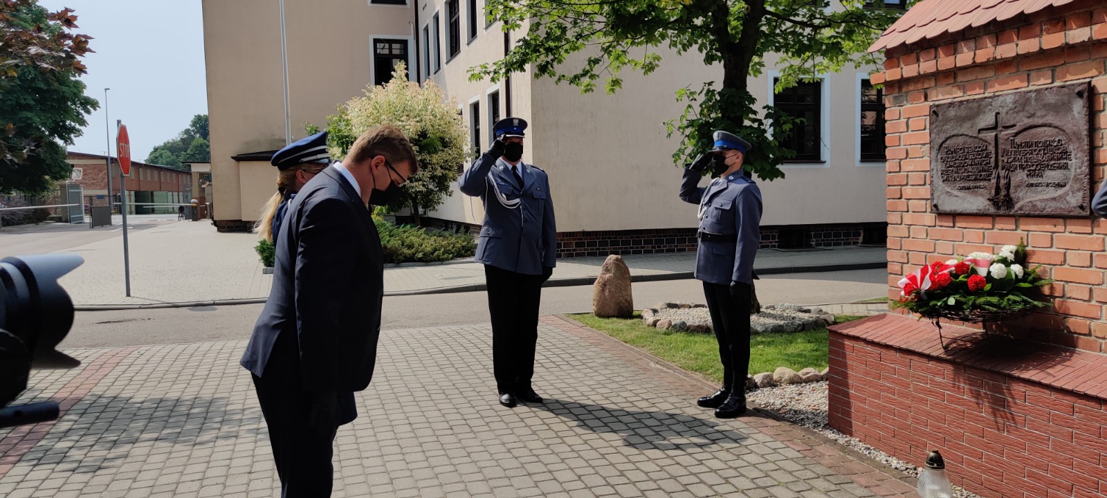 Podczas uroczystości złożono kwiaty pod tablicą upamiętniającą policjantów zamordowanych w Kalininie oraz wręczono zasłużonym policjantom wyróżnienia, odznaczenia i akty mianowania przyznane za zasługi i etyczną postawę.