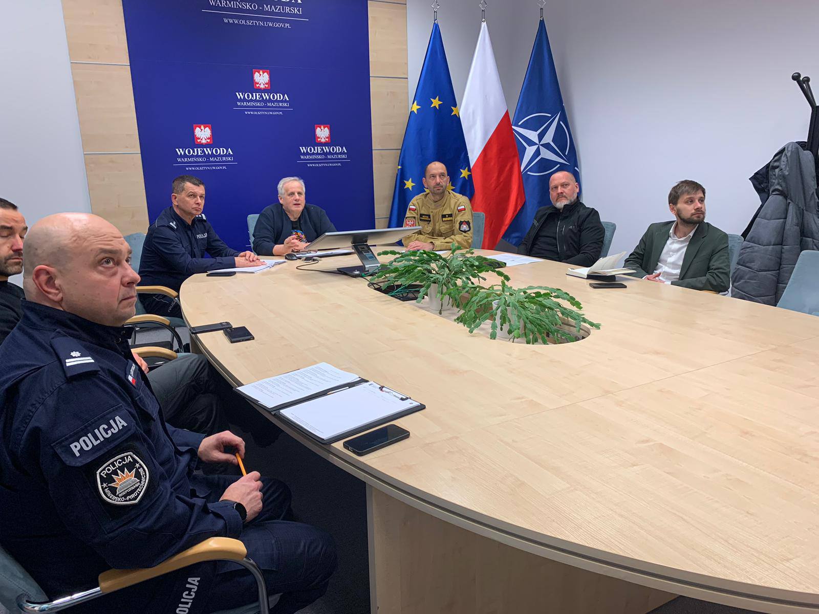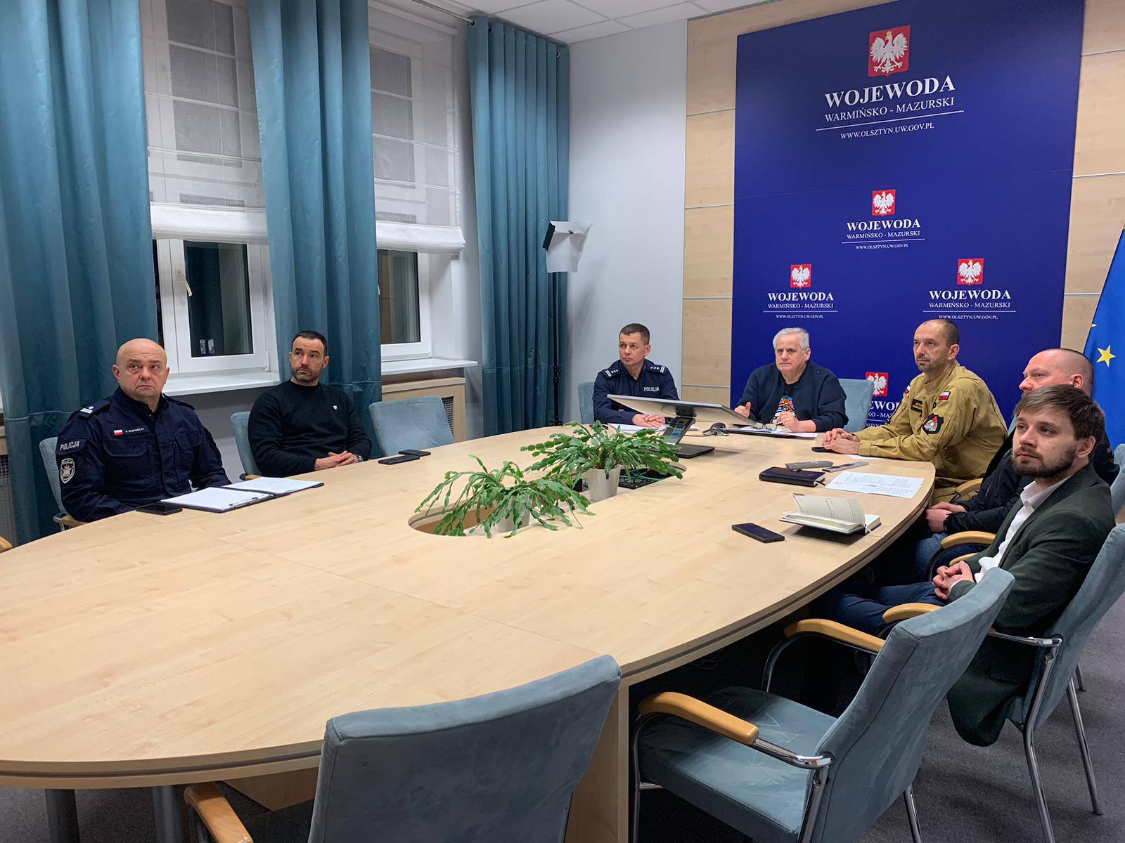 W spotkaniu uczestniczył Wicewojewoda Warmińsko-Mazurski Zbigniew Szczypiński, a także przedstawiciele Ministerstwa Spraw Wewnętrznych i Administracji, Instytutu Meteorologii i Gospodarki Wodnej – IMGW PIB oraz służb i instytucji: Policji, Państwowej Straży Pożarnej, Wód Polskich oraz Generalnej Dyrekcji Dróg Krajowych i Autostrad.
