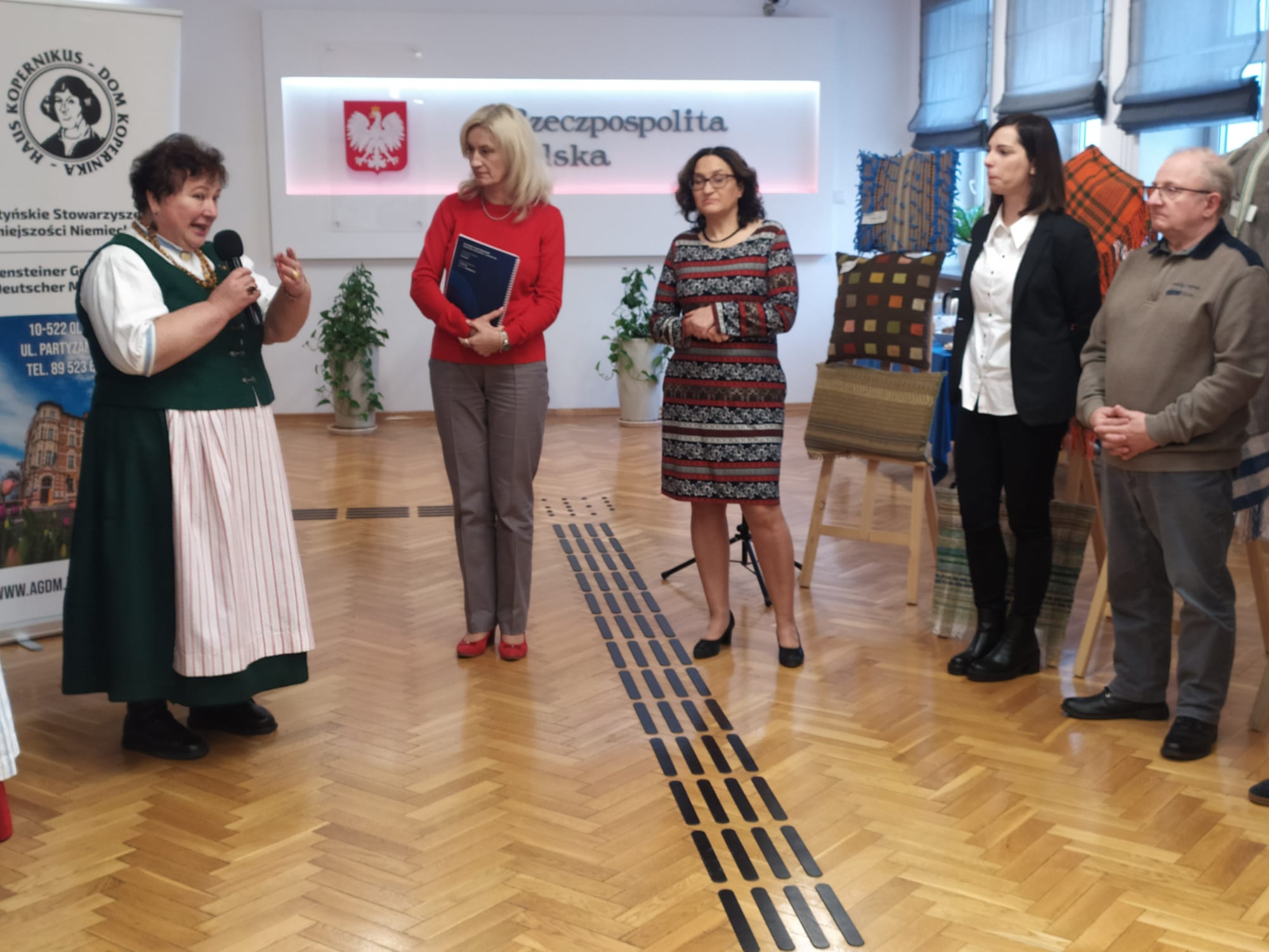 27 listopada br. w Warmińsko-Mazurskim Urzędzie Wojewódzkim w Olsztynie odbyło się otwarcie wystawy prac wykonanych podczas zajęć tkackich, realizowanych w ramach całorocznego projektu pn. „Sztuka tkactwa – chrońmy przed zapomnieniem”. Autorem projektu jest Olsztyńskie Stowarzyszenie Mniejszości Niemieckiej w Olsztynie. Swoje autorskie rękodzieła prezentowały uczestniczki warsztatów.