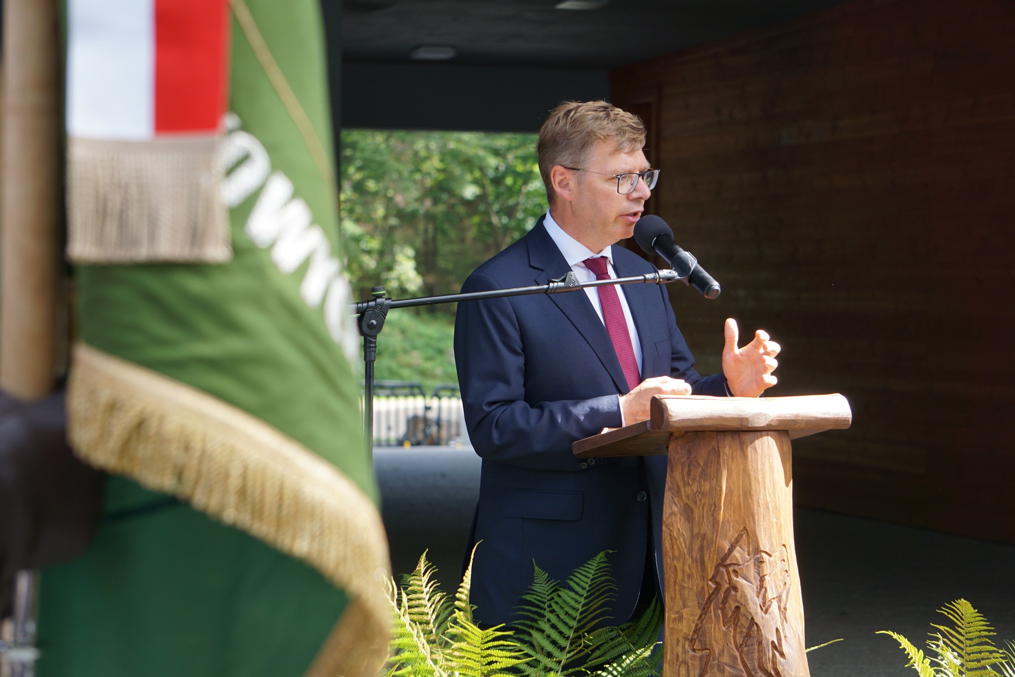 Wojewoda Artur Chojecki wziął udział w Uroczystej Naradzie Olsztyńskich Leśników, połączonej z otwarciem nowych inwestycji w Ośrodku Edukacji Historyczno-Przyrodniczej „Wilczy Szaniec” Nadleśnictwa Srokowo.