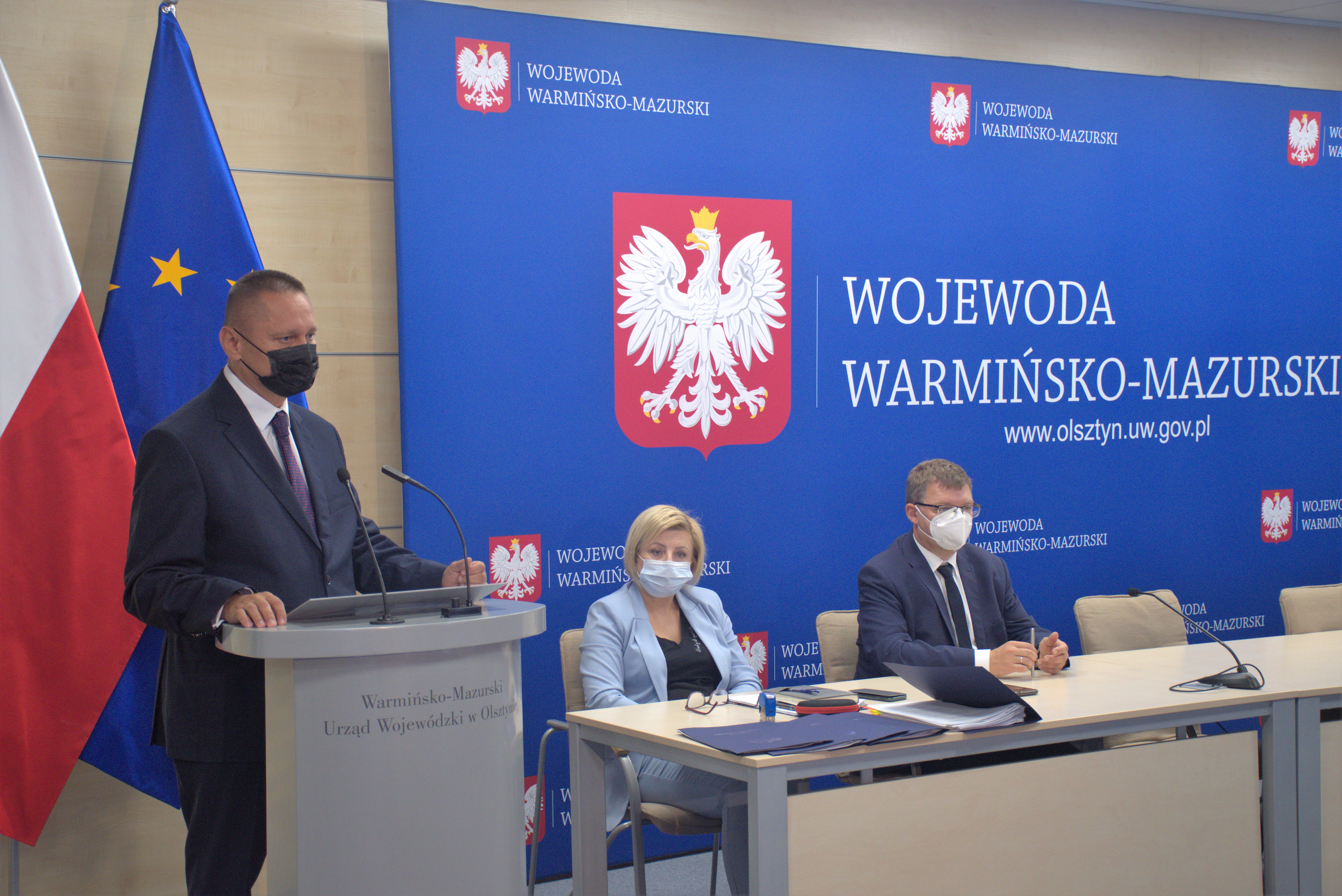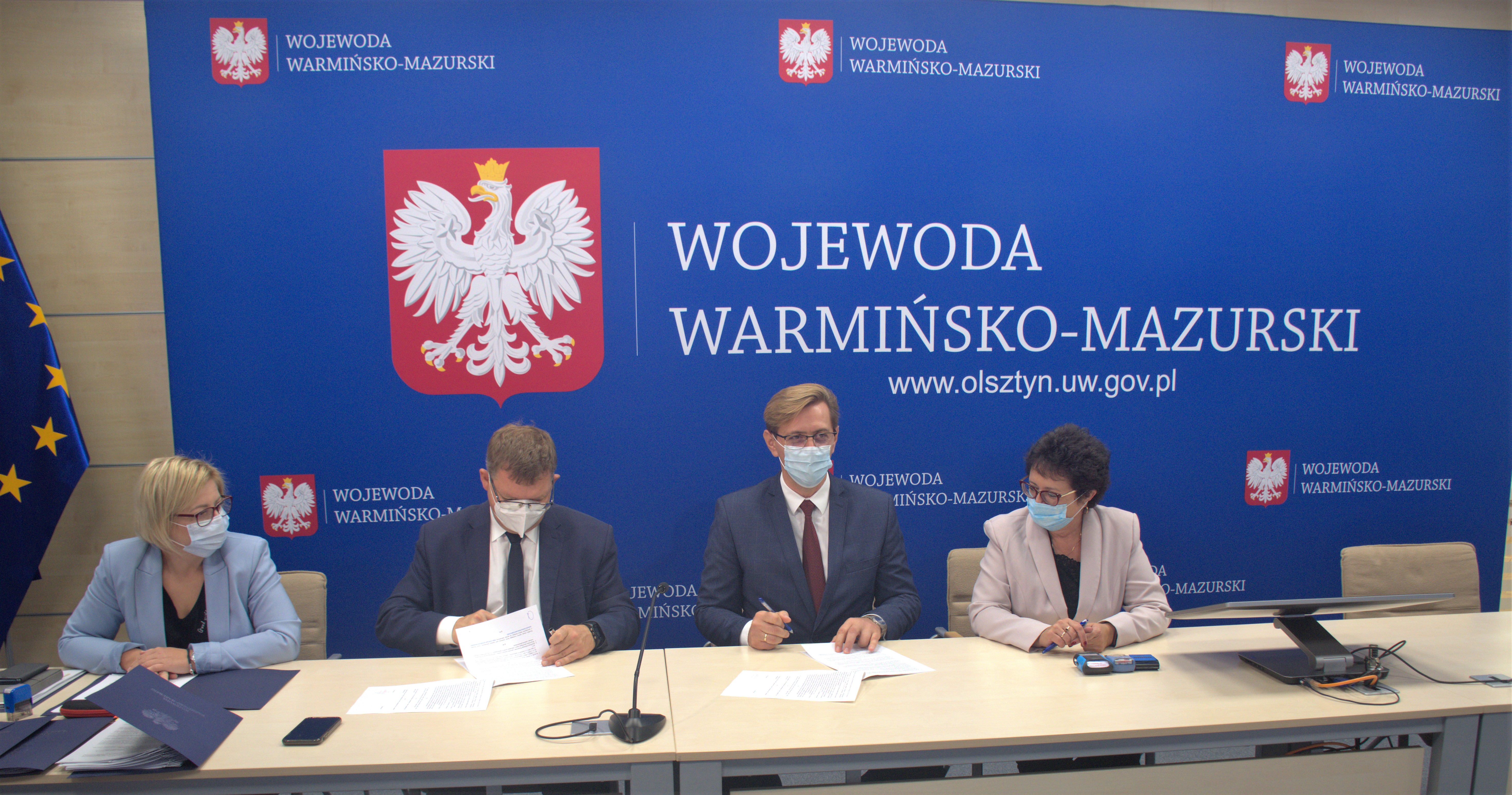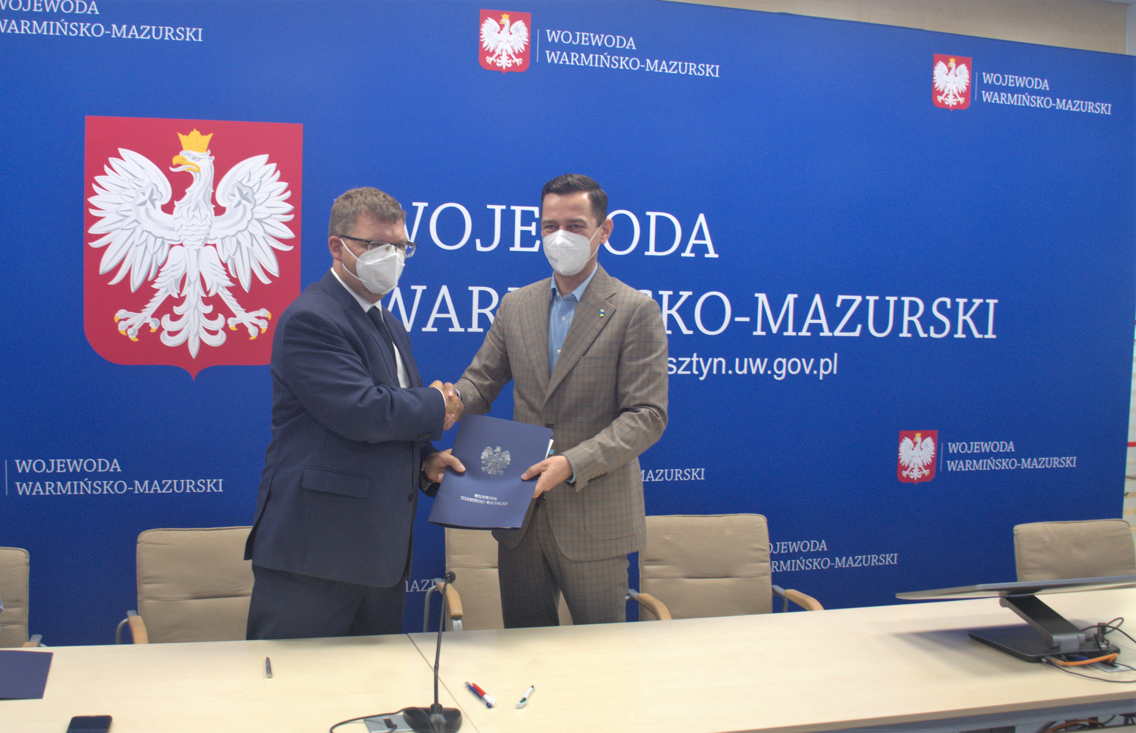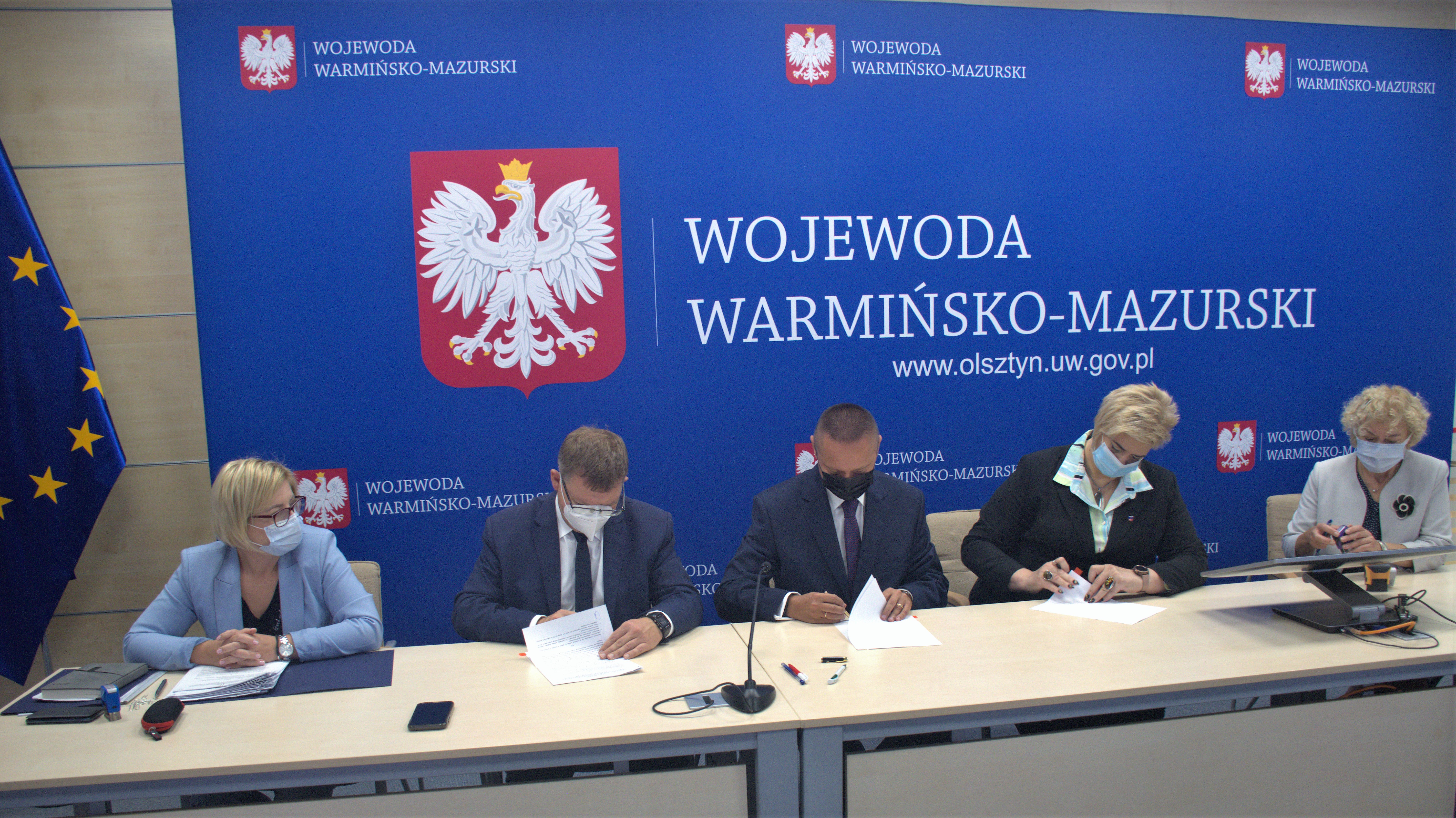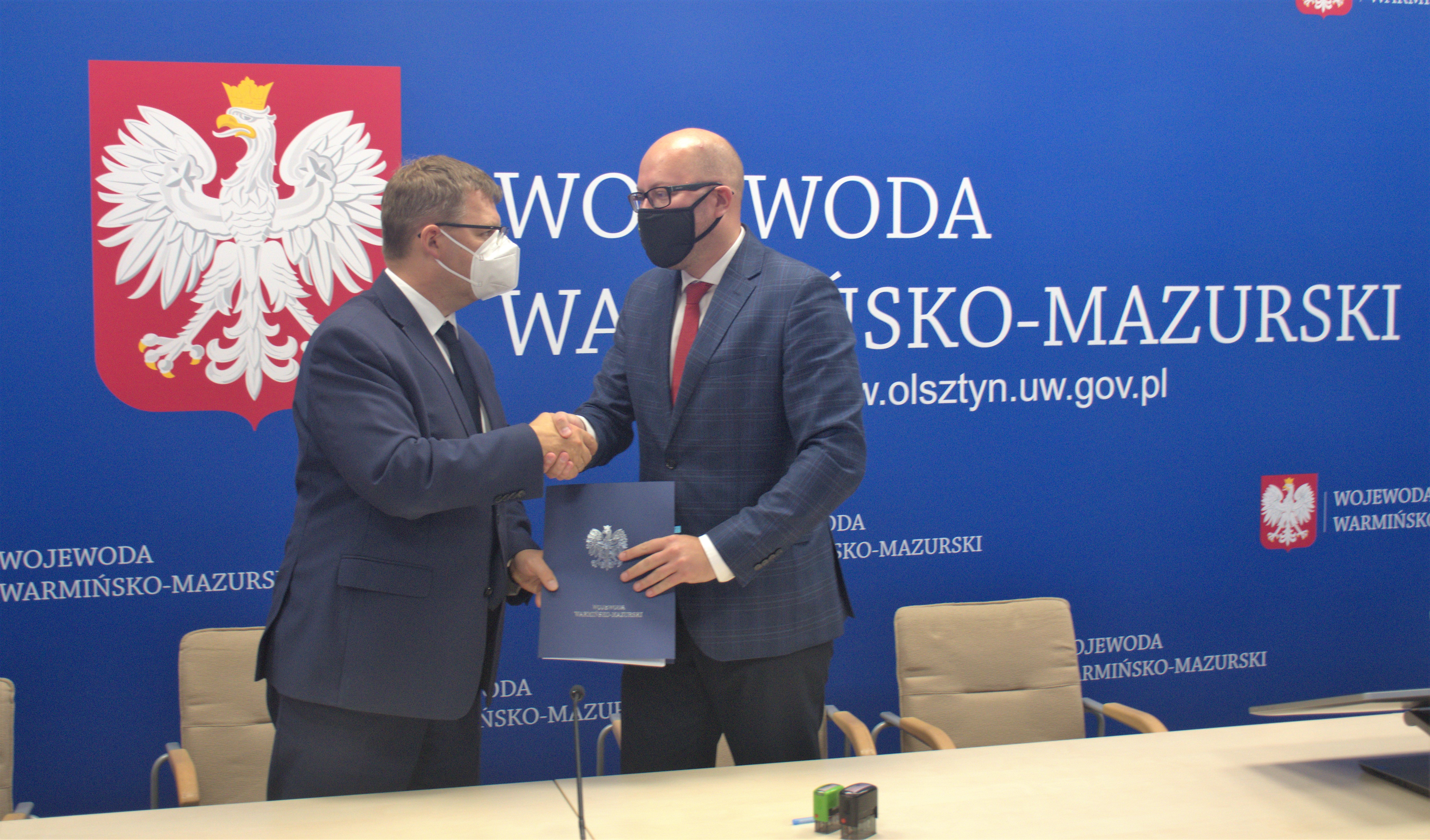 Dziś w Warmińsko-Mazurskim Urzędzie Wojewódzkim Wojewoda Artur Chojecki podpisał 30 umów z samorządami powiatu olsztyńskiego na dofinansowanie zadań mających na celu poprawę bezpieczeństwa ruchu pieszych w obszarze oddziaływania przejść dla pieszych w ramach Rządowego Funduszu Rozwoju Dróg.