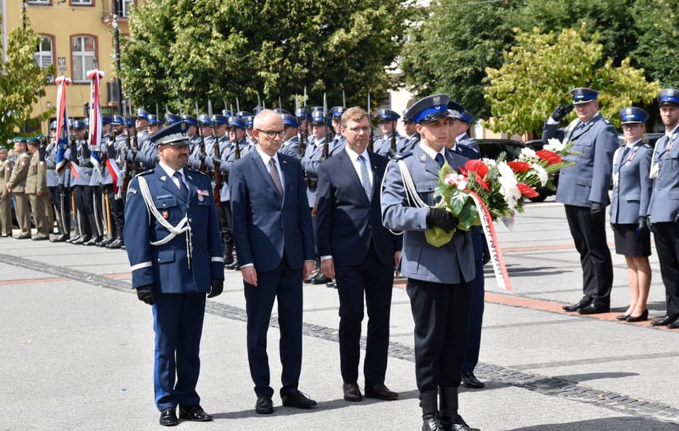 Wojewoda Artur Chojecki w swoim przemówieniu złożył serdeczne życzenia wszystkim funkcjonariuszkom i funkcjonariuszom, wyrażając swoje uznanie za ich poświęcenie i odwagę w pełnieniu służby na rzecz mieszkańców regionu i całego kraju. Zachęcał również do kontynuowania doskonalenia zawodowego oraz rozwijania współpracy z lokalną społecznością, co jest niezwykle ważne dla budowania zaufania między policją a obywatelami. W swoim wystąpieniu podkreślił także, że nie tylko obecni funkcjonariusze, ale także ci, którzy przyczynili się do powstania i rozwoju policji, zasługują na hołd i szacunek. Ich wkład w budowanie bezpiecznego i stabilnego kraju jest nieoceniony, dlatego ważne jest, aby pamiętać o ich dziedzictwie i kontynuować ich dobre dzieło.