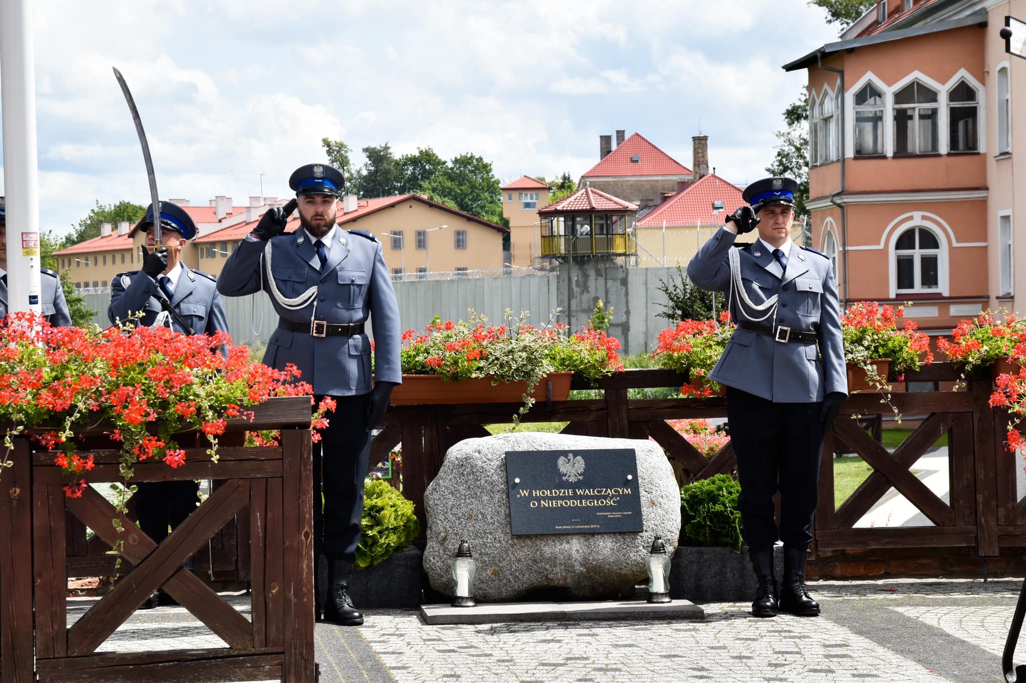 W uroczystości wzięli udział m.in.: Wiceminister Spraw Wewnętrznych i Administracji Błażej Poboży, Wojewoda Warmińsko-Mazurski Artur Chojecki, Zastępca Komendanta Głównego Policji nadinsp. Dariusz Augustyniak oraz Komendant Wojewódzki Policji w Olsztynie nadinsp. Tomasz Klimek. Wspólna delegacja złożyła kwiaty pod pomnikiem upamiętniającym osoby, które walczyły o niepodległość.