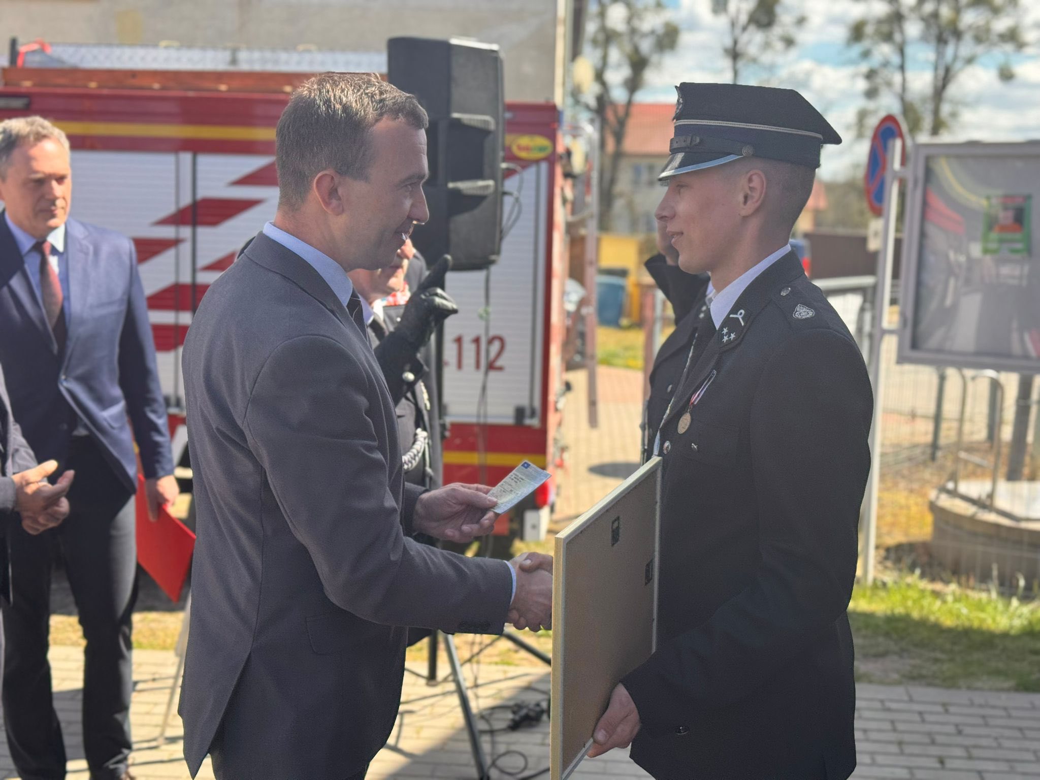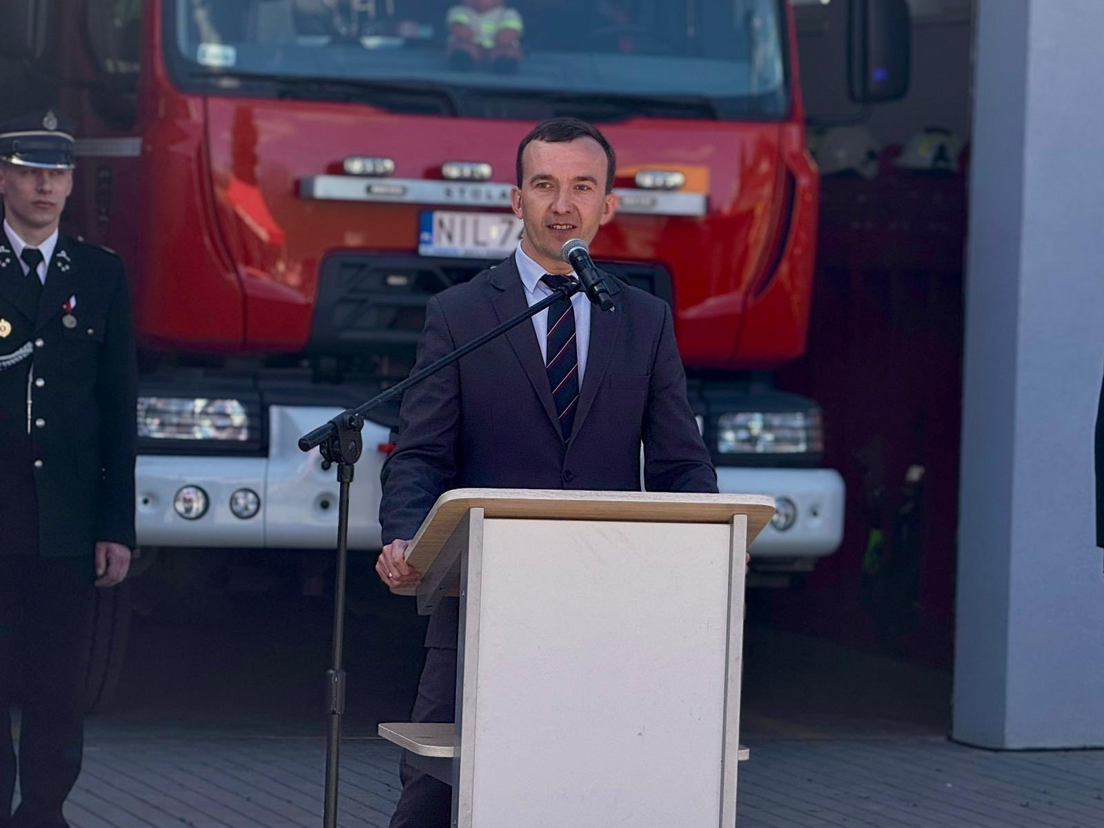 Wicewojewoda Warmińsko-Mazurski Mateusz Szauer uczestniczył w uroczystym przekazaniu nowego średniego wozu ratowniczo-gaśniczego dla Ochotniczej Straży Pożarnej w Ząbrowie.