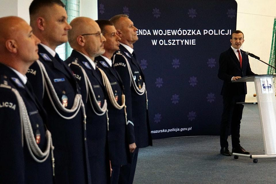 Podczas uroczystości Wicewojewoda Mateusz Szauer pogratulował insp. Jarosławowi Brzozowskiemu oraz insp. Radosławowi Drachowi, którzy zostali powołani na stanowiska I i II Zastępcy Komendanta Wojewódzkiego Policji w Olsztynie. Ich bogate doświadczenie, profesjonalizm oraz zaangażowanie są gwarancją dalszego rozwoju i podnoszenia standardów pracy Policji w województwie warmińsko-mazurskim.