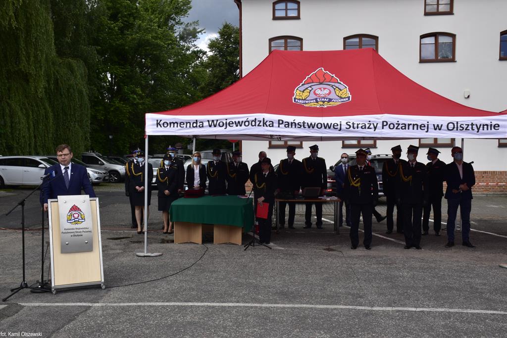 To jedna z pierwszy takich uroczystości po przerwie spowodowanej pandemią koronawirusa. W tym roku nie świętowano, dlatego dziś była okazja, by to nadrobić. Dzisiejsze uroczystości w Olsztynie to również okazja do nagrodzenia wyróżniających się strażaków, między innymi za wieloletnią służbę.