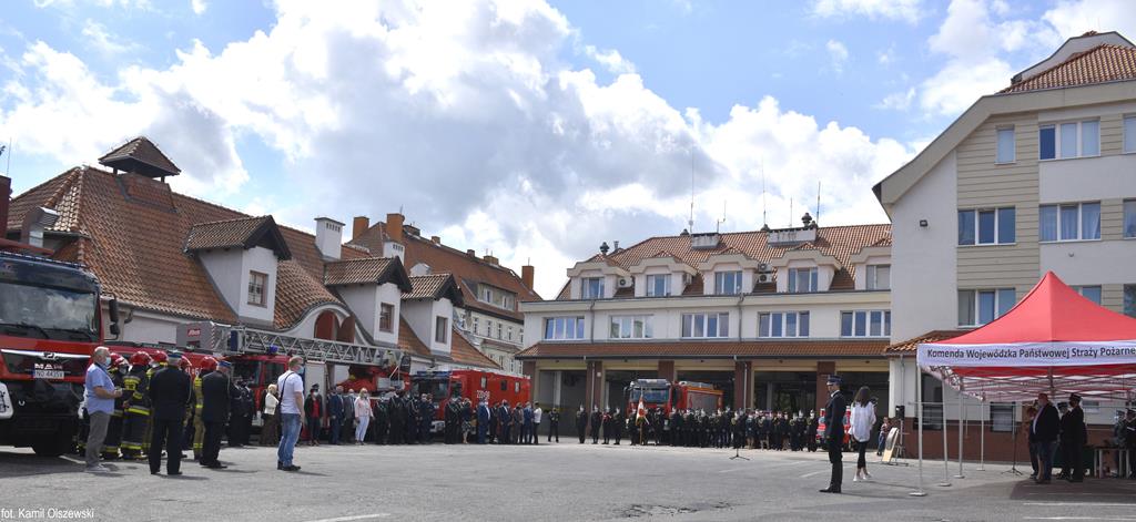 To był nieco spóźniony, ale wyjątkowy i owocny Dzień Strażaka. Po przerwie spowodowanej pandemią koronawirusa, druhowie, zawodowi gaśniczy, ale również przedstawiciele samorządu, rządu i parlamentu spotkali się na placu Komendy Wojewódzkiej PSP. Zostały wręczone odznaczenia i promesy na zakup nowych wozów.