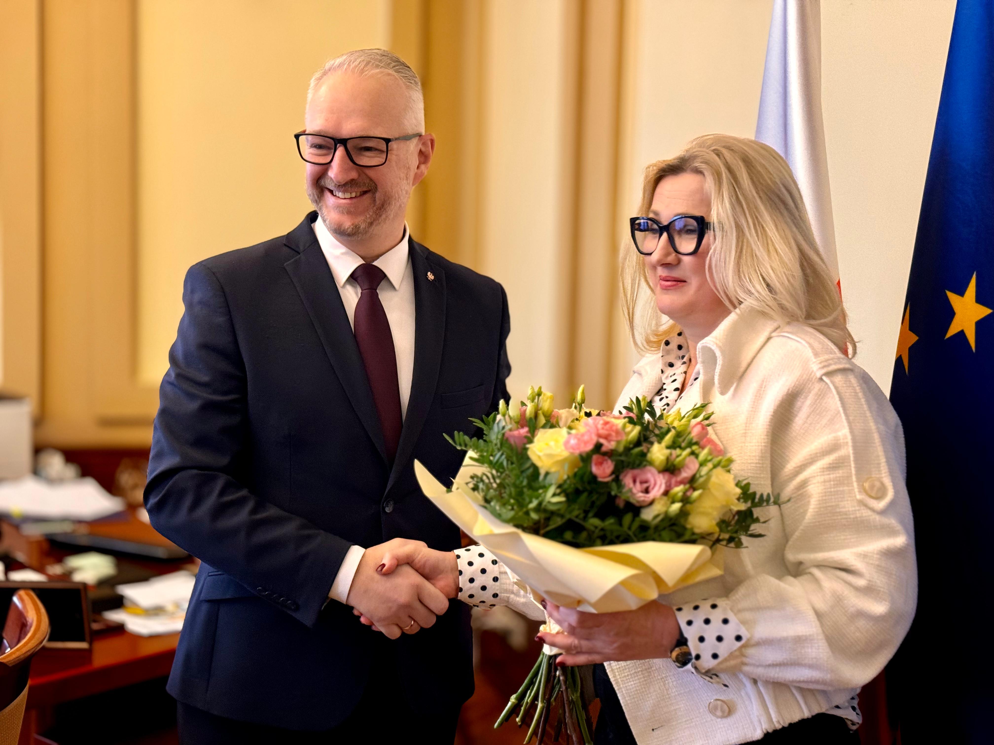 Wojewoda Radosław Król pogratulował Urszuli Kalinowskiej prestiżowego wyróżnienia