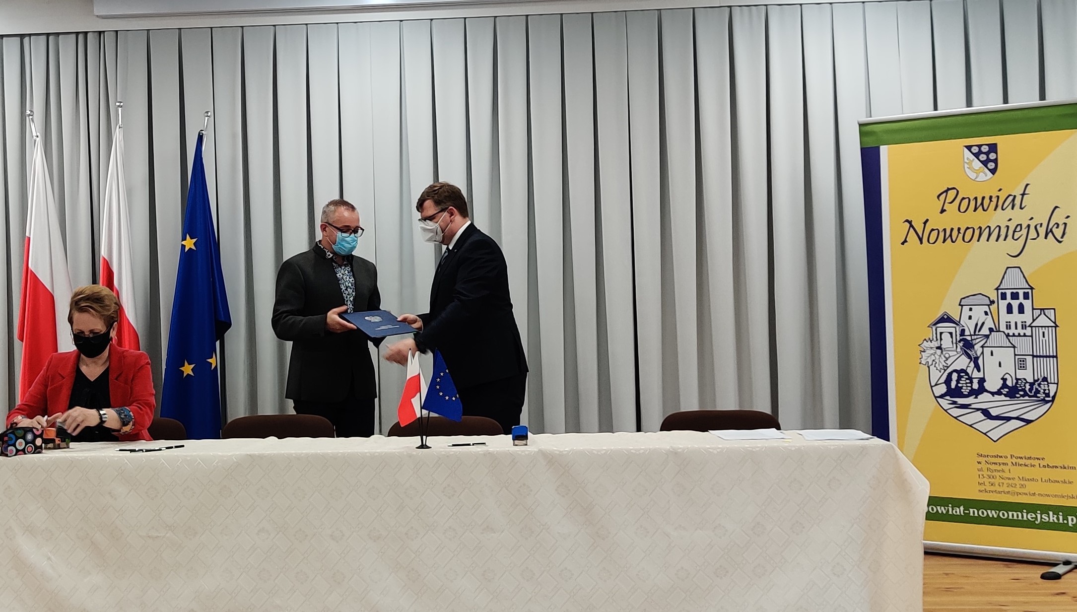 Dziś w Nowym Mieście Lubawskim Wojewoda Artur Chojecki podpisał kolejne 10 umów z samorządami powiatu nowomiejskiego na dofinansowanie inwestycji drogowych w ramach Rządowego Funduszu Rozwoju Dróg.
