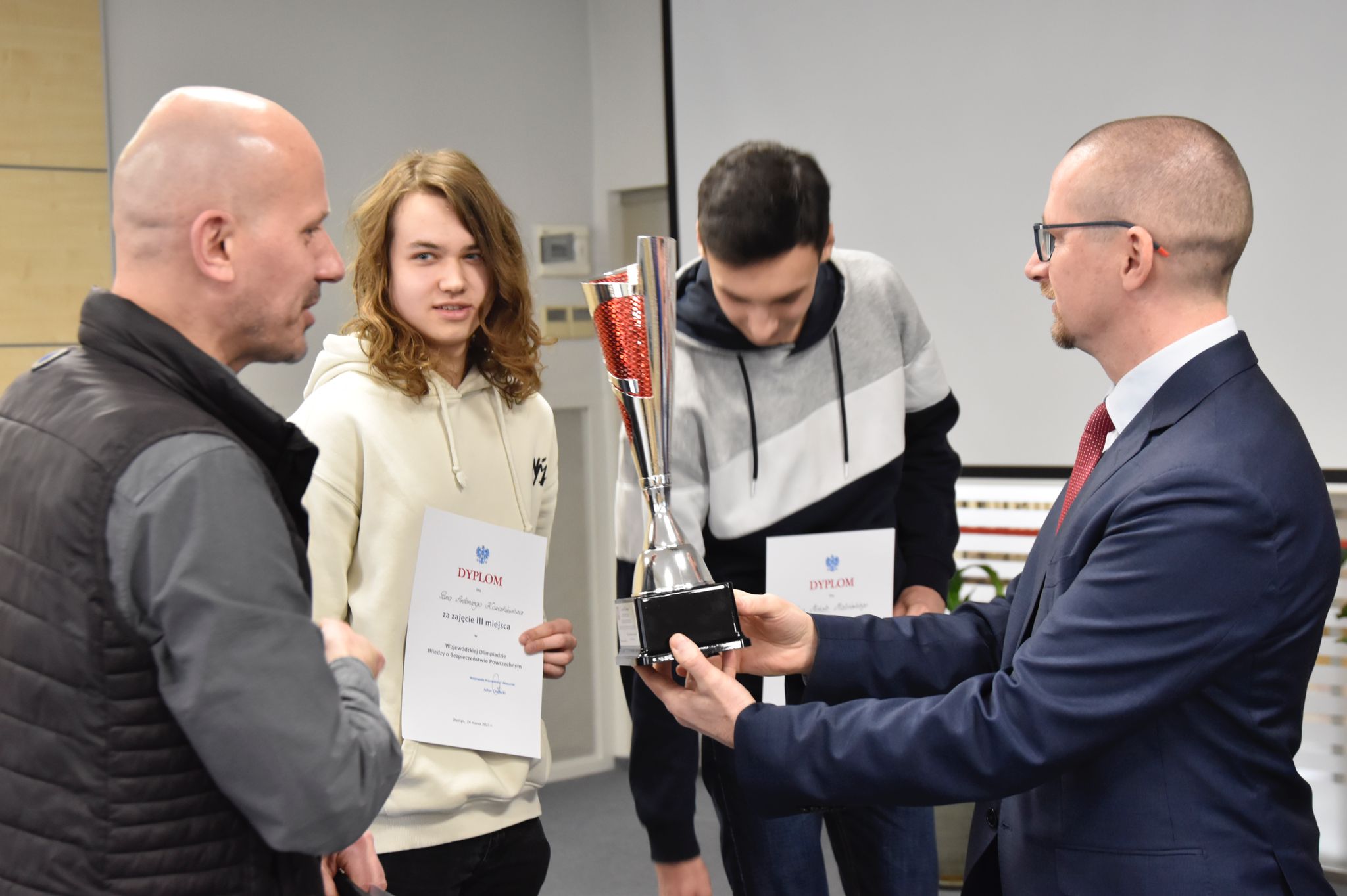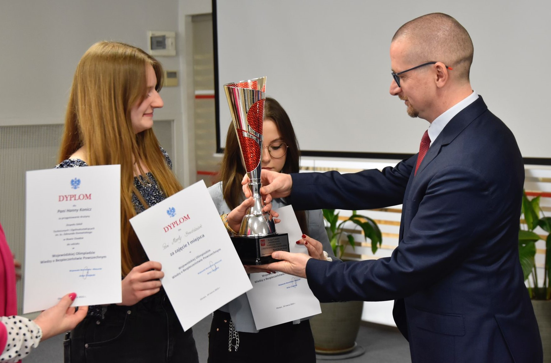 24 marca w Warmińsko-Mazurskim Urzędzie Wojewódzkim w Olsztynie odbyła się Wojewódzka Olimpiada Wiedzy o Bezpieczeństwie Powszechnym. W imieniu Wojewody Warmińsko-Mazurskiego nagrody wręczyli Rzecznik Prasowy Wojewody – Pan Krzysztof Guzek oraz Zastępca Dyrektora Wydziału Bezpieczeństwa i Zarządzania Kryzysowego – Pan Ryszard Sieniuć. Wszyscy uczestnicy Olimpiady oraz ich opiekunowie otrzymali dyplomy za uczestnictwo. Drużyny ścisłego finału oraz ich opiekunowie, otrzymali nagrody w postaci pucharów oraz sprzętu turystycznego.