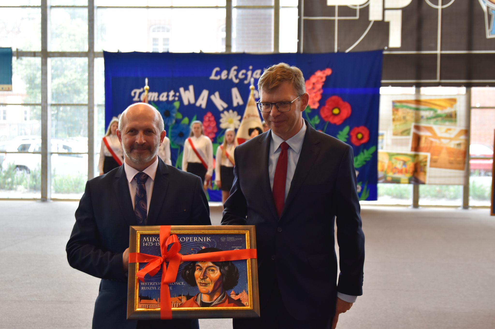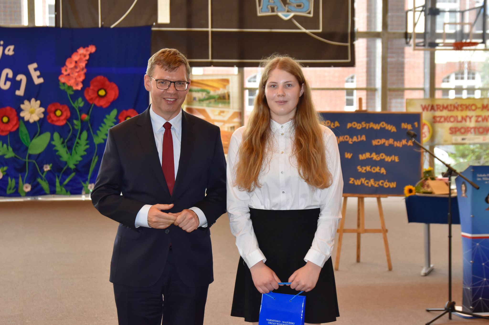 Wojewoda Artur Chojecki wręczył dyrektorowi placówki Dariuszowi Żyłowskiemu obraz z wizerunkiem patrona szkoły Mikołaja Kopernika. W roku 550. rocznicy urodzin i 480. rocznicy śmierci tego wielkiego astronoma i humanisty należy podkreślać wartość cechującej go odwagi w dążeniu do prawdy i tytanicznej pracowitości. Mrągowska podstawówka nosząca jego imię znajduje się w pierwszej dziesiątce najlepszych szkół w województwie warmińsko-mazurskim, nie tylko pod kątem naukowym, ale również sportowym.