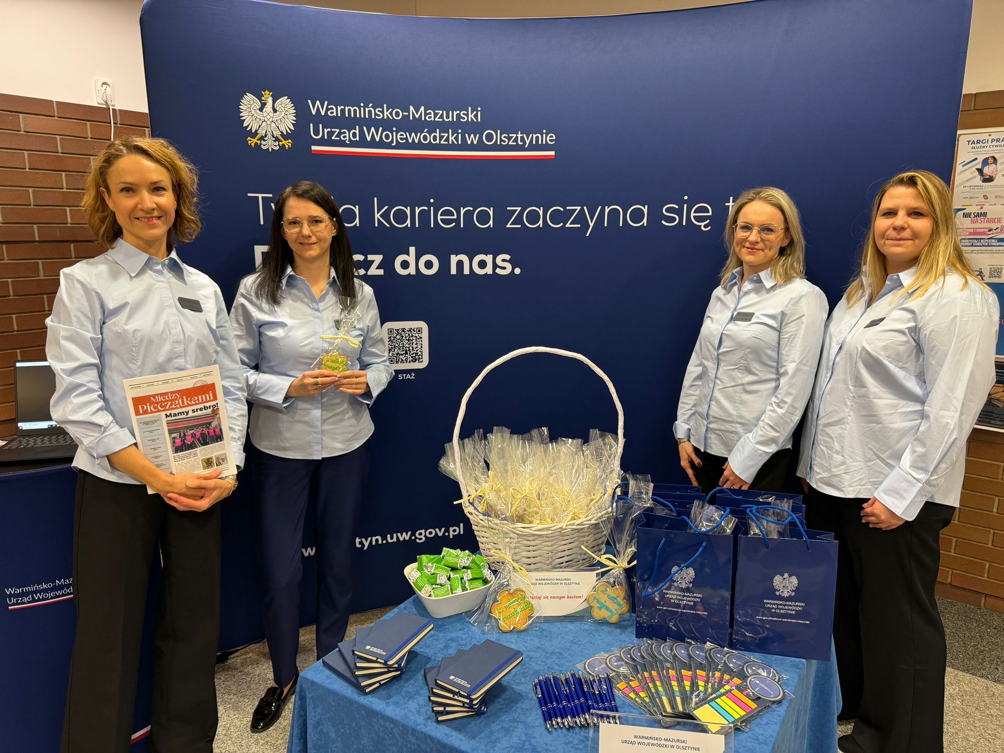 Stoisko naszego urzędu cieszyło się dużym zainteresowaniem uczestników. Przedstawiono ofertę praktyk, staży oraz zasady rekrutacji do służby cywilnej. Odwiedzający mogli uzyskać odpowiedzi na pytania dotyczące ścieżek rozwoju, systemu awansu oraz codziennej pracy w urzędzie. Podkreślano, że WMUW w Olsztynie jest miejscem nowoczesnym, otwartym na młodych pracowników i oferującym stabilne warunki zatrudnienia połączone z możliwością rozwoju zawodowego.