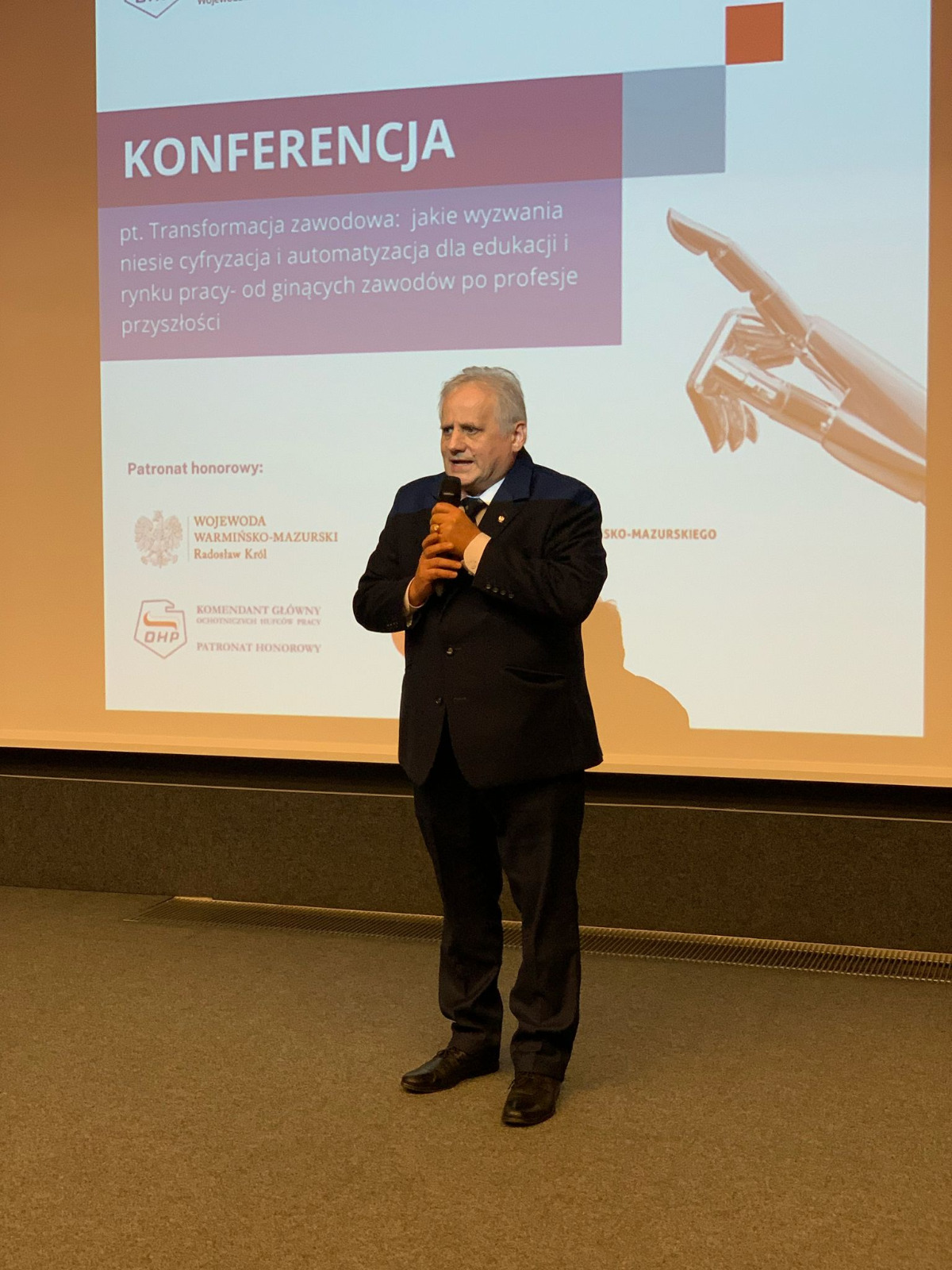 Wicewojewoda Warmińsko-Mazurski Zbigniew Szczypiński wziął udział w wyjątkowym wydarzeniu poświęconym przyszłości pracy i edukacji - konferencji zorganizowanej w Elblągu przez OHP Warmia Mazury, Centrum Edukacji i Pracy Młodzieży OHP w Elblągu oraz Akademię Nauk Stosowanych w Elblągu.
