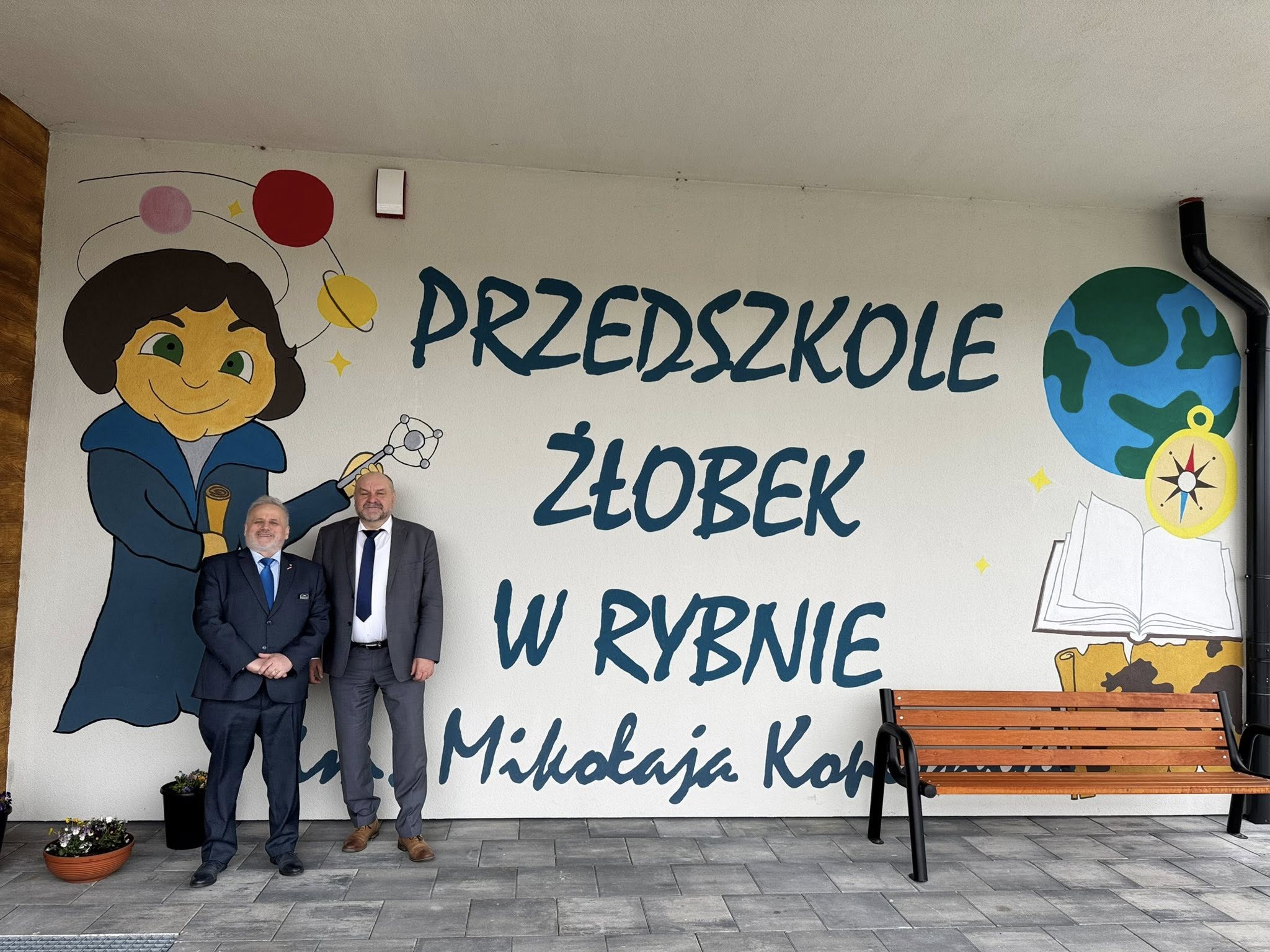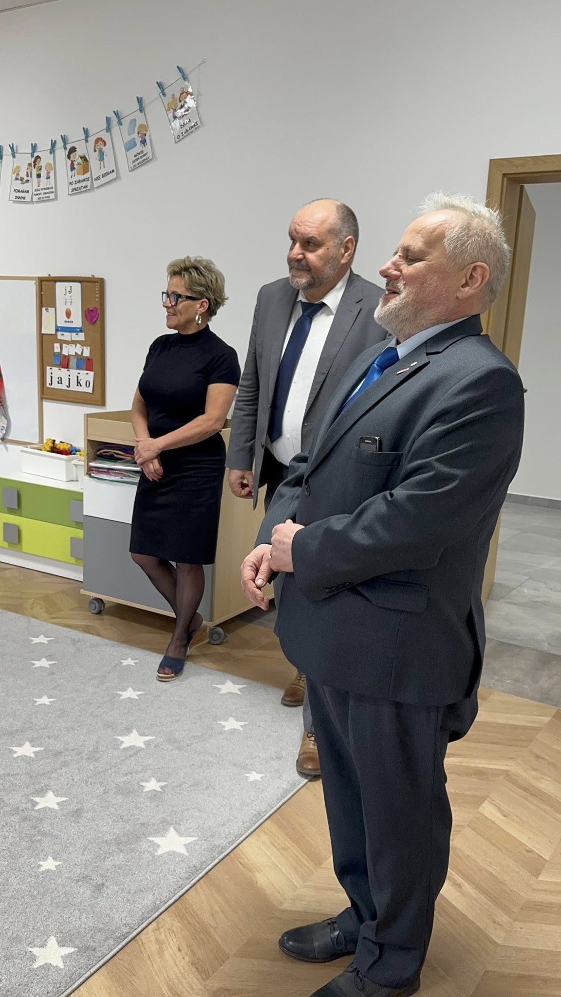Kolejnym punktem było przedszkole ze żłobkiem - nowoczesna placówka zapewniająca wysokiej jakości opiekę i edukację najmłodszych. Inwestycja została częściowo zrealizowana przy wsparciu rządowego programu „Aktywny Maluch”, stanowiąc przykład efektywnego wykorzystania środków publicznych.