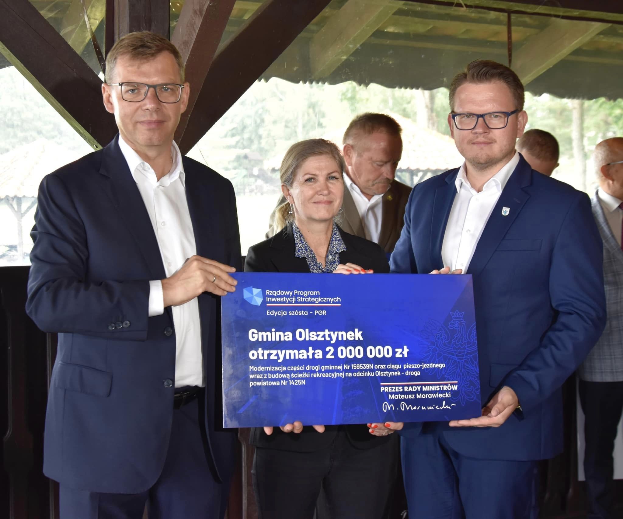 - Gmina Olsztynek otrzymała 2 000 000,00 zł na modernizację drogi gminnej Nr 159539N oraz ciągu pieszo-jezdnego, wraz z budową ścieżki rekreacyjnej na odcinku Olsztynek - droga powiatowa Nr 1425N, co stworzy lepsze warunki dla pieszych i rowerzystów.