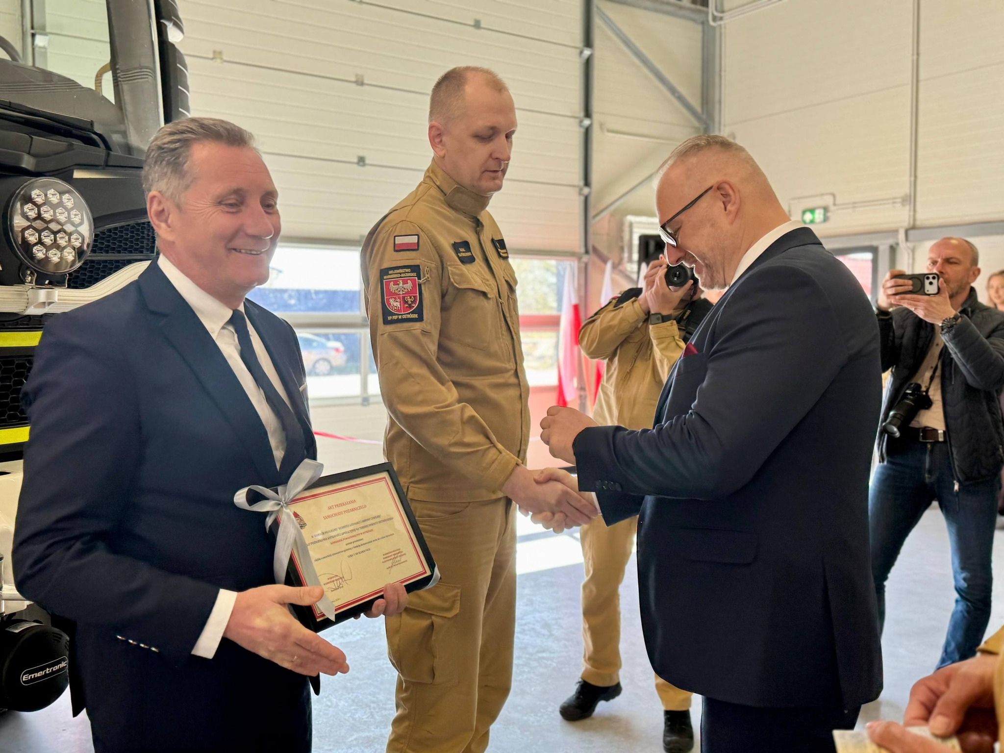 Wojewoda Król otworzył halę garażową i magazyn w Jednostce Ratowniczo-Gaśniczej w Morągu