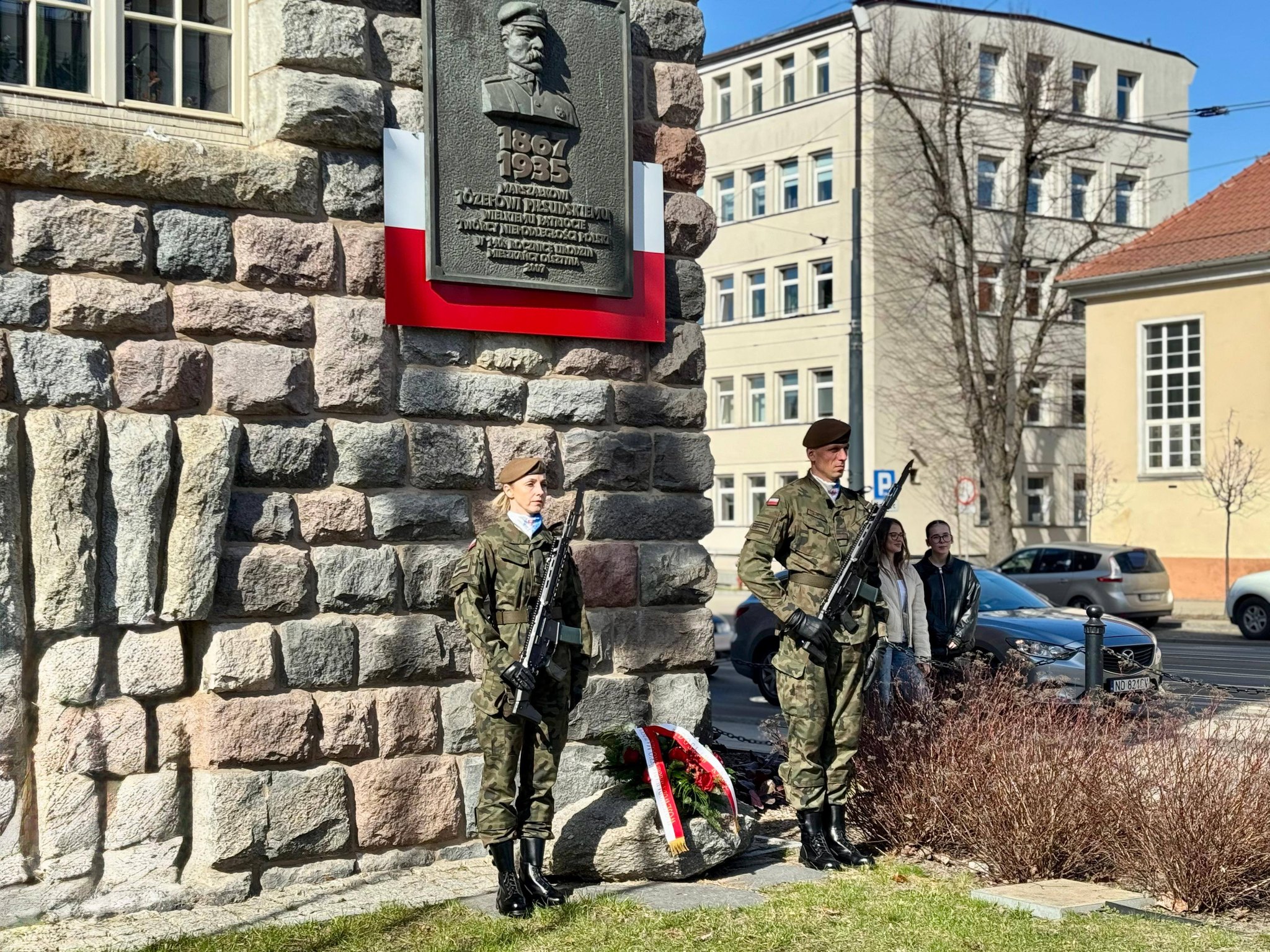 Z okazji imienin Józefa Piłsudskiego Wojewoda Warmińsko-Mazurski Radosław Król złożył kwiaty pod pomnikiem upamiętniającym Marszałka.