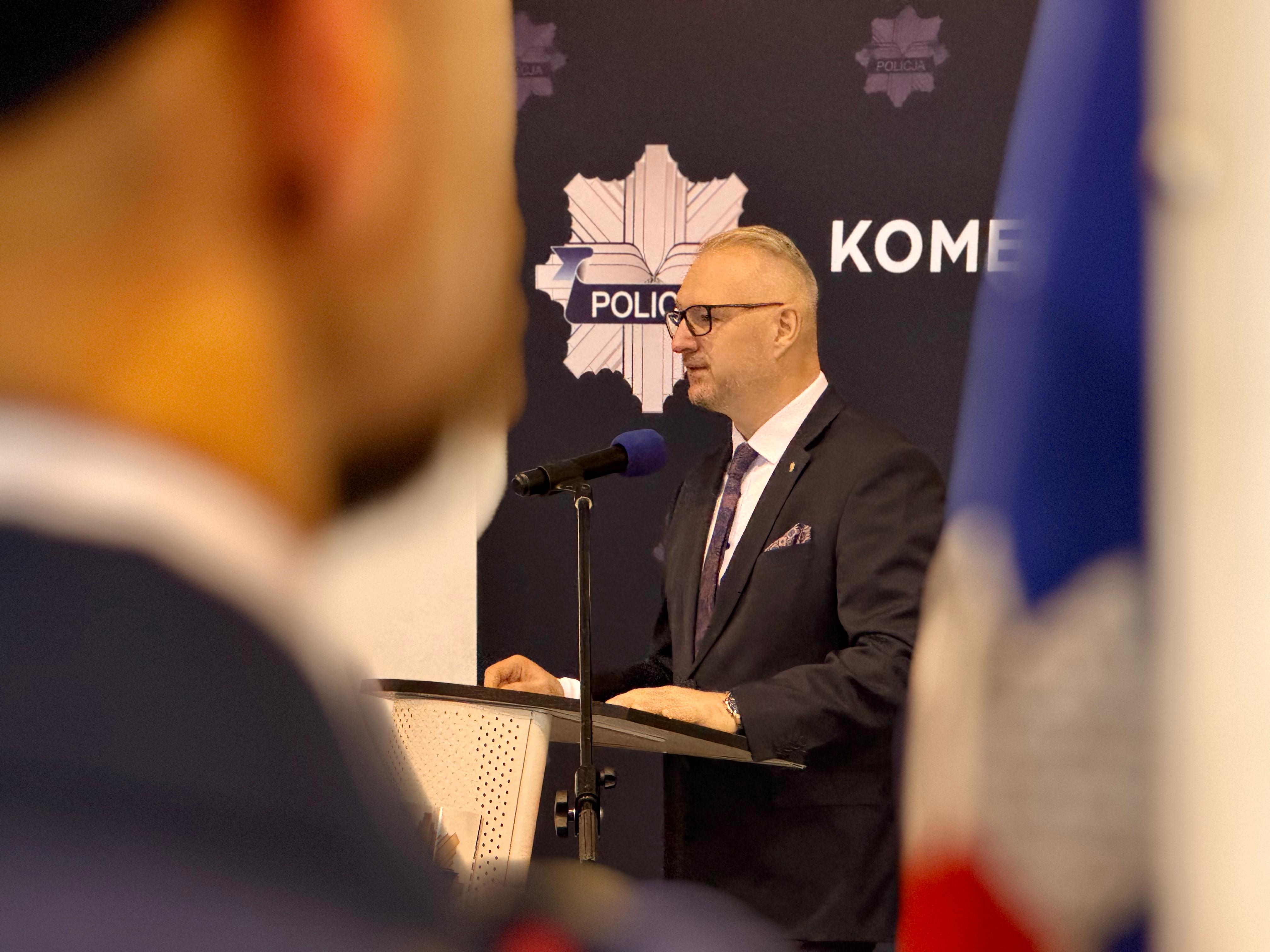 Wojewoda Radosław Król wyraził wdzięczność i szacunek wobec wyróżnionych policjantów, mówiąc: