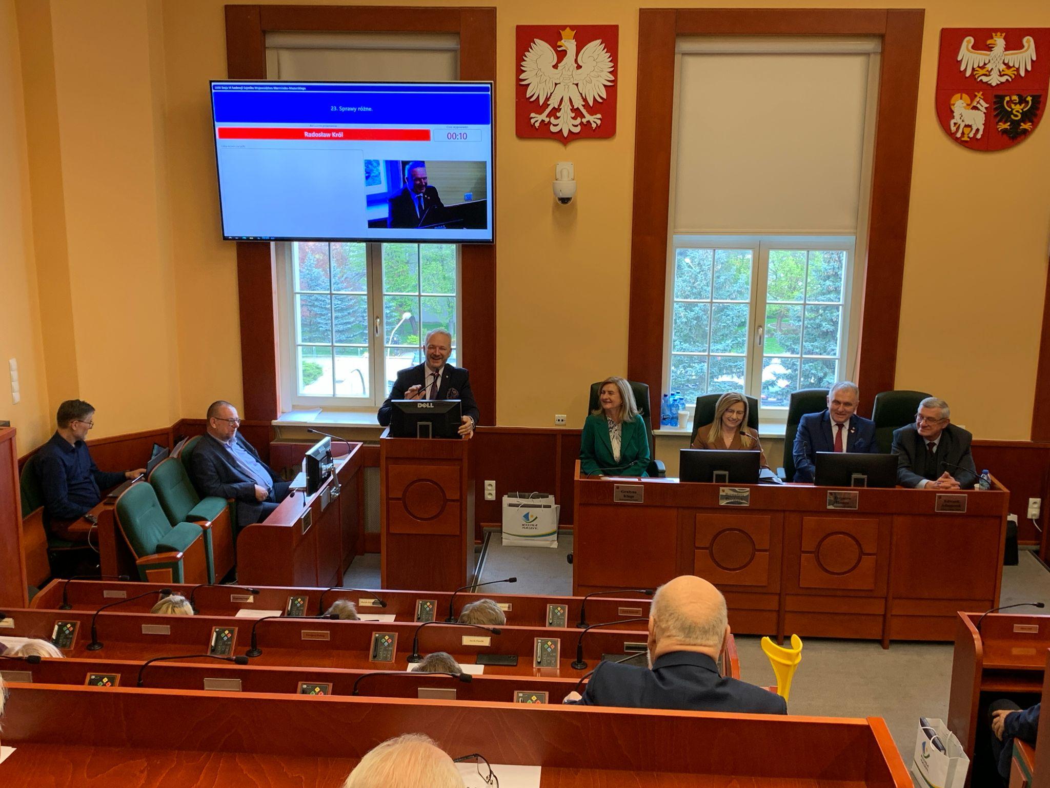 Wojewoda Warmińsko-Mazurski Radosław Król wziął udział w obradach LVIII Sesji Sejmiku Województwa Warmińsko-Mazurskiego podczas których podziękował samorządowcom VI kadencji za ich niezwykłą służbę publiczną. Ich zaangażowanie i oddanie sprawom lokalnym były nieocenione.