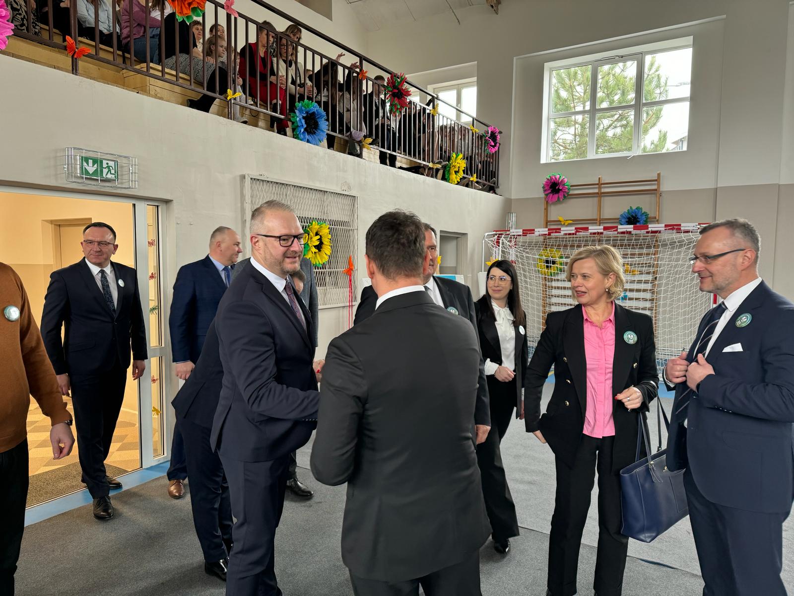Następnie Wojewoda odwiedził Szkołę Podstawową nr 5 im. Ziemi Braniewskiej w Braniewie, która zakończyła realizację dwóch kluczowych projektów: „Termomodernizacja Obiektów Oświatowych i Użyteczności Publicznej Miasta Braniewa" oraz „Zagospodarowanie Terenu przy Szkole Podstawowej nr 5 w Braniewie". Dzięki tym inwestycjom, szkoła wkroczyła w nową erę, zapewniając uczniom i nauczycielom komfortowe i przyjazne warunki nauki oraz spędzania czasu w szkole.