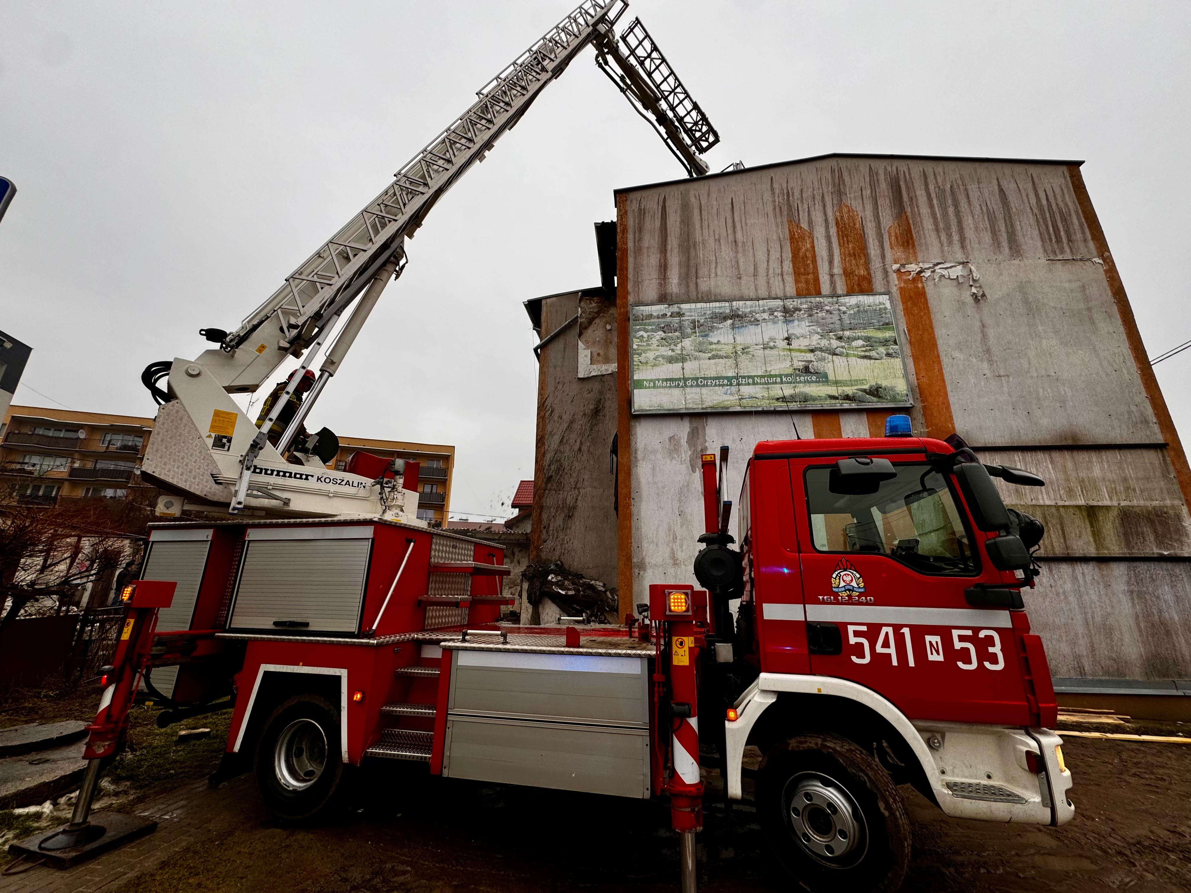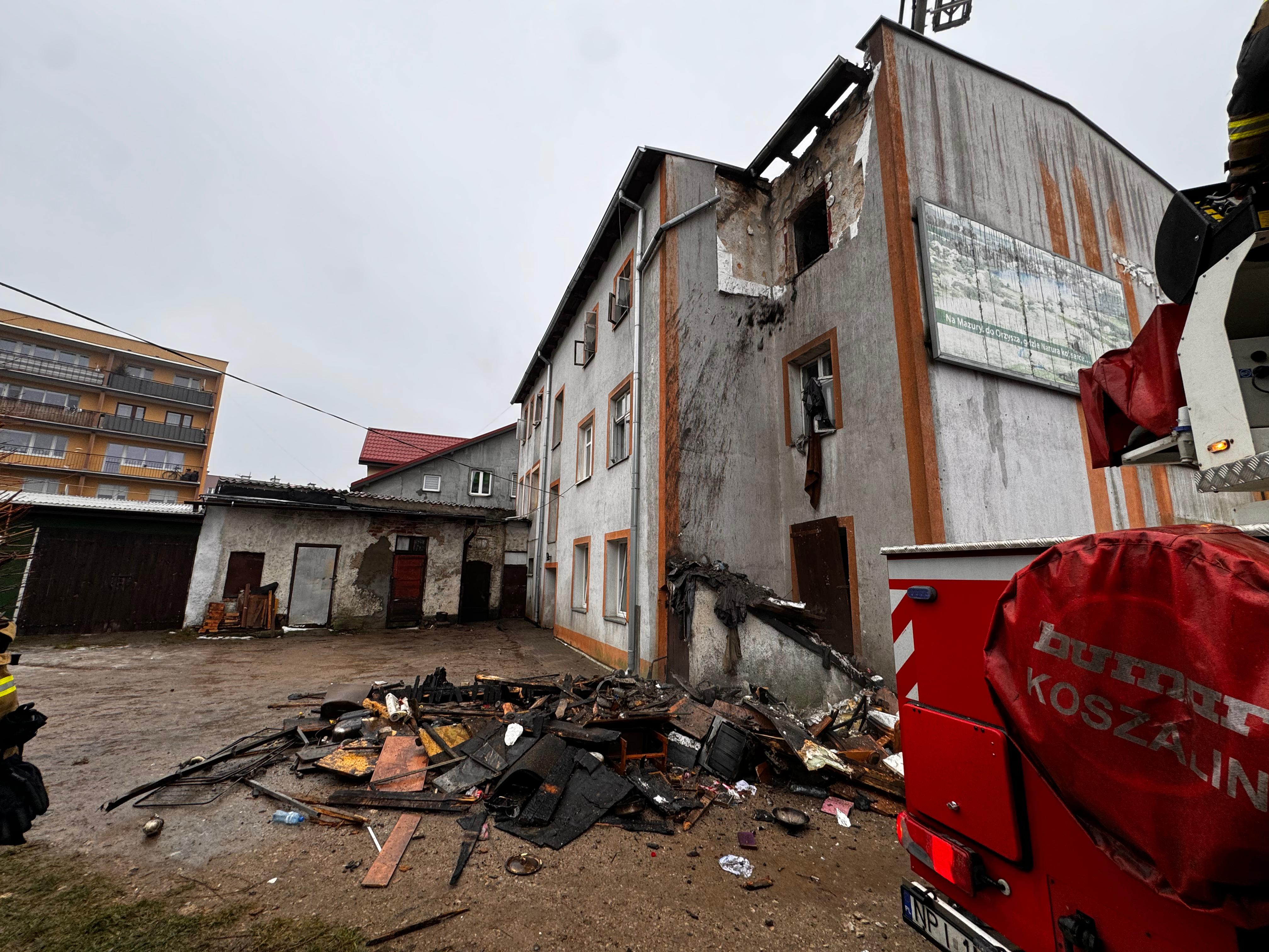 Wojewoda na miejscu pożaru kamienicy w Orzyszu