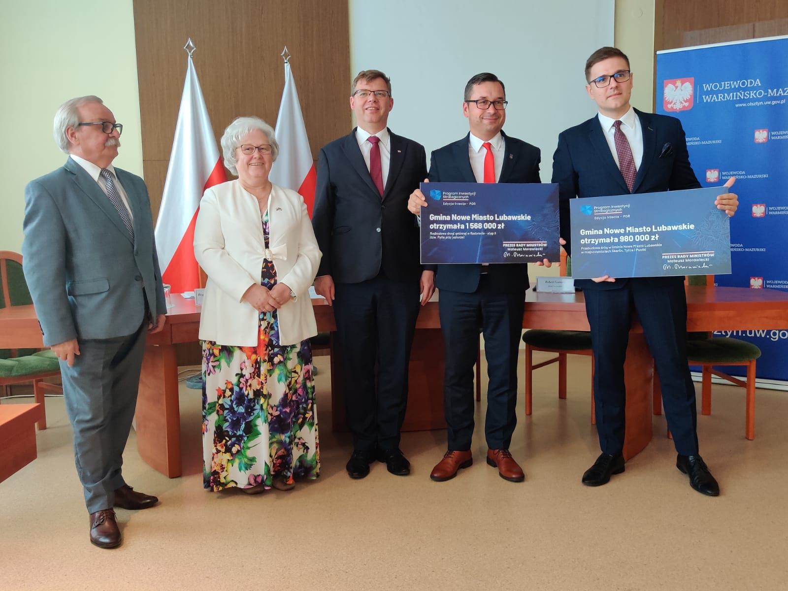 Obecny na konferencji Wojewoda Warmińsko-Mazurski Artur Chojecki wraz z senator Bogusławą Orzechowską oraz posłami Leonardem Krasulskim i Robertem Gontarzem wręczył promesy przedstawicielom gmin i powiatów z okręgu elbląskiego.