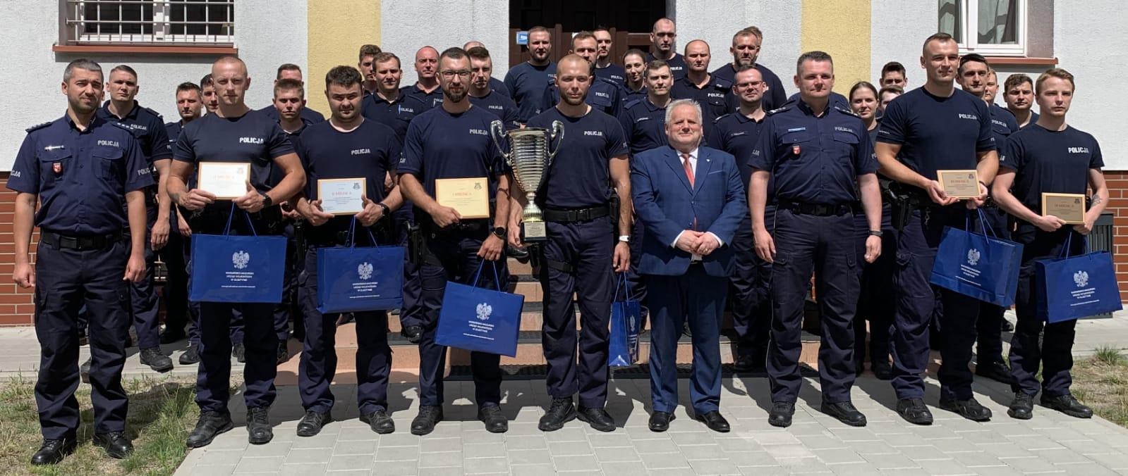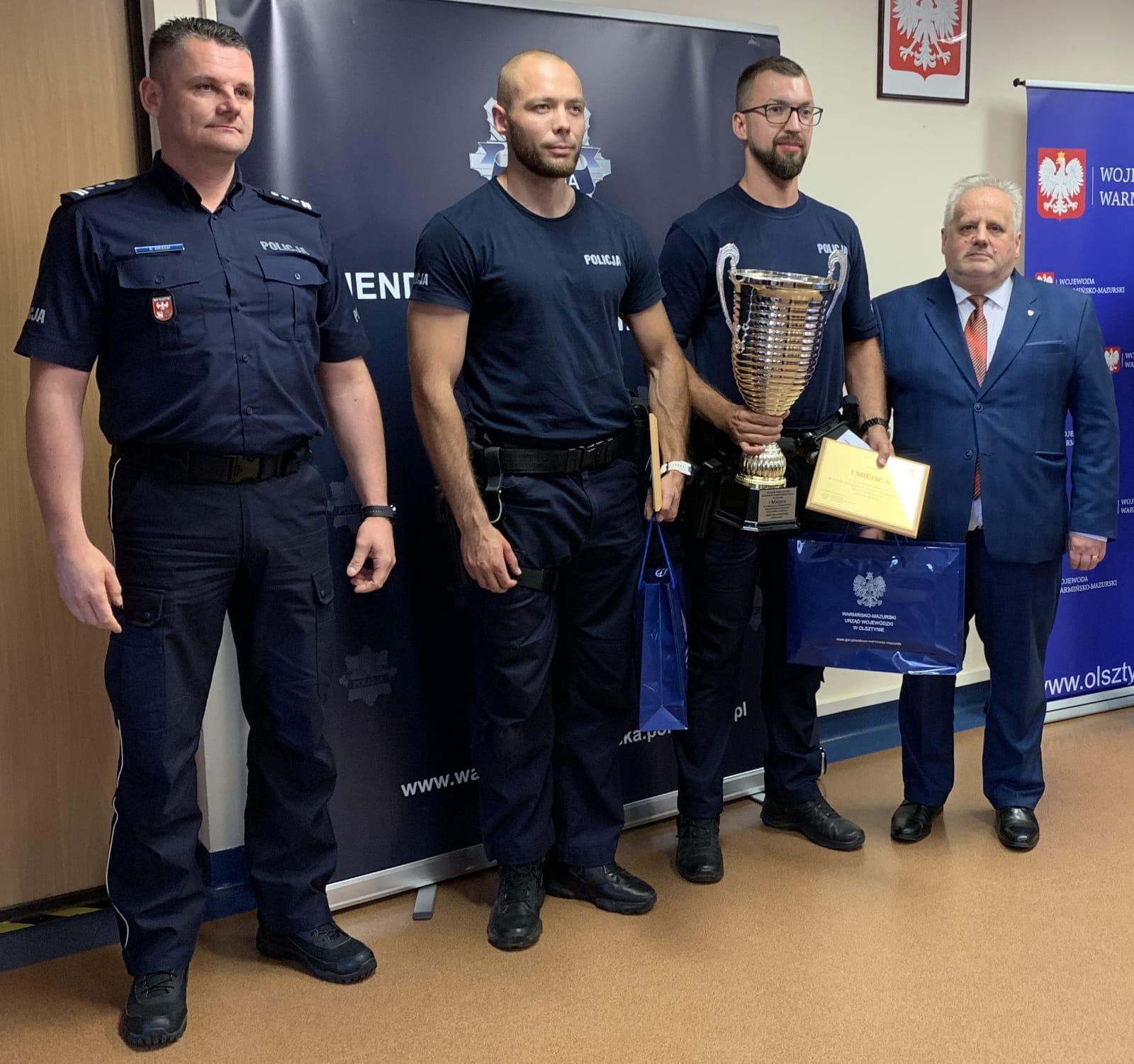 W trakcie zawodów zmagali się funkcjonariusze reprezentujący wszystkie komendy miejskiei powiatowe Policji województwa warmińsko-mazurskiego. Wicewojewoda Warmińsko-Mazurski Zbigniew Szczypiński wręczył trzem najlepszym parom nagrody ufundowane przez Wojewodę Warmińsko-Mazurskiego Radosława Króla, który objął wydarzenie honorowym patronatem. Zwycięzcom nagrody wręczył i osobiście pogratulował również insp. Radosław Drach p.o. Zastępca Komendanta Wojewódzkiego Policji w Olsztynie.