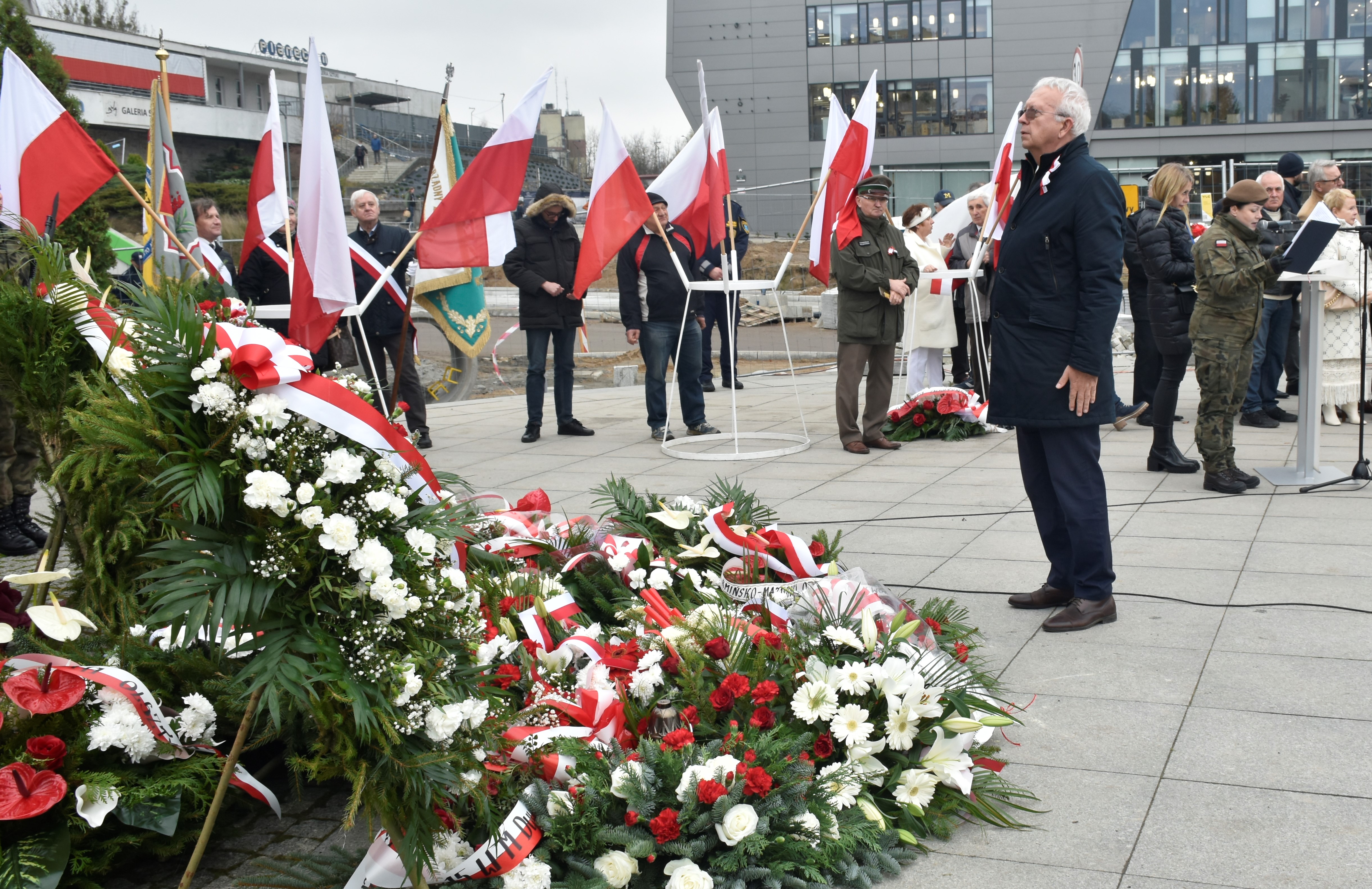 Po przemówieniach oficjalne delegacje złożyły kwiaty pod pomnikiem Wolności Ojczyzny. Kolejnym akcentem świątecznych uroczystości było złożenie kwiatów pod tablicą upamiętniającą marszałka Józefa Piłsudskiego, znajdującą się na budynku Urzędu Marszałkowskiego.