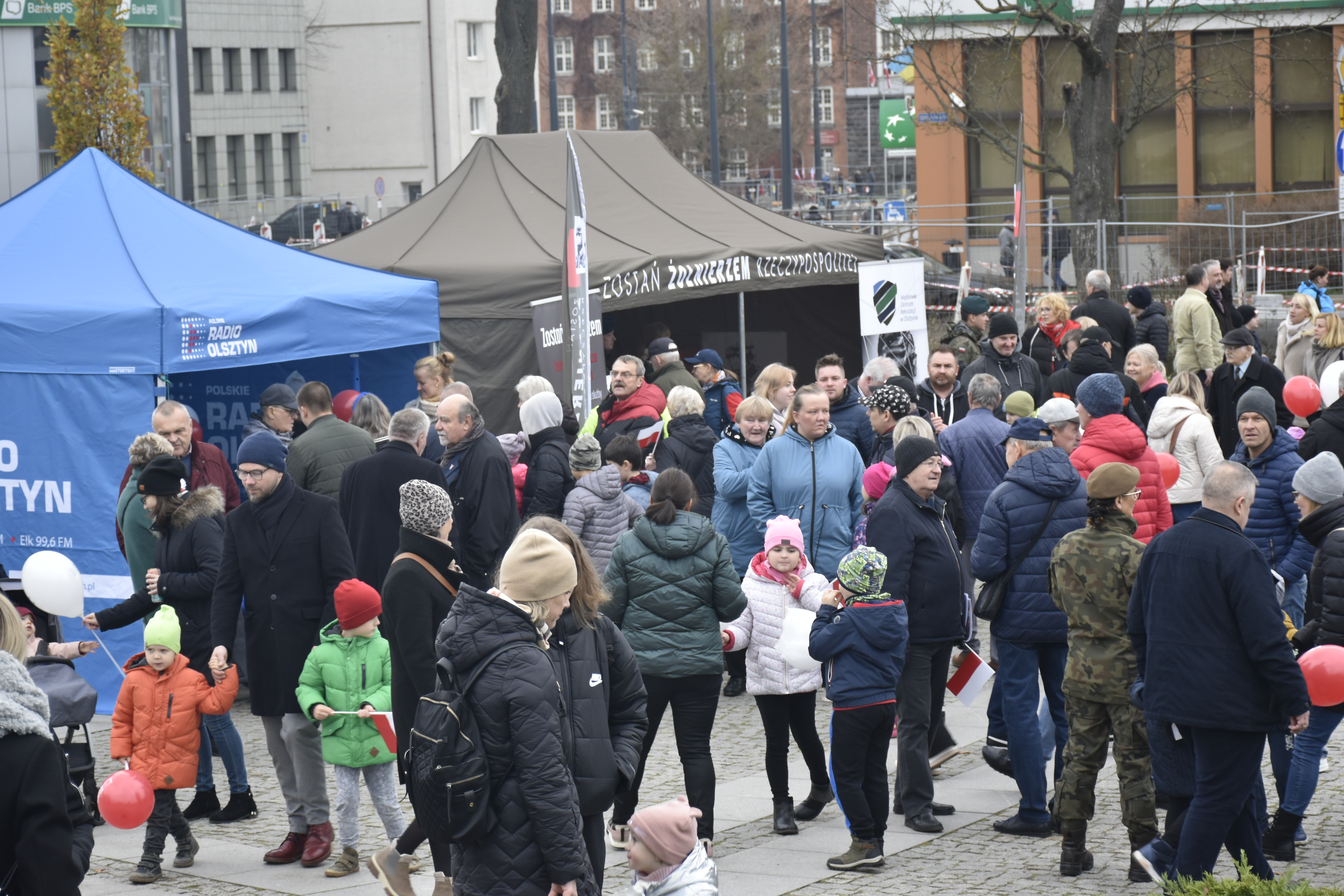 Następnie uczestnicy obchodów przeszli na Plac Solidarności, gdzie pod pomnikiem Wolności Ojczyzny zorganizowano oficjalne uroczystości z udziałem wojewody warmińsko-mazurskiego, marszałka województwa i prezydenta Olsztyna, a także parlamentarzystów i samorządowców z regionu, przedstawicieli służb mundurowych, instytucji wojewódzkich, stowarzyszeń i mieszkańców.
