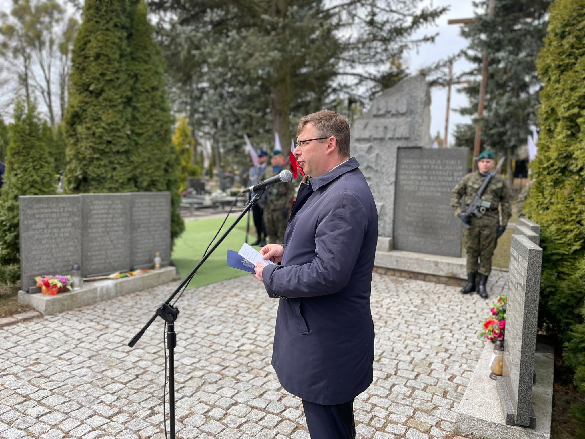 „Tegoroczne rocznice: 82. Zbrodni Katyńskiej i 12. Katastrofy smoleńskiej odbywają się mając na tle wydarzenia, które od 24 lutego br., zdominowały światową politykę i powszechną uwagę narodów. Rosyjski agresor napadł w równie podstępny sposób, jak 17 września 1939 roku zadał ciężki cios Polsce zaangażowanej w wojnę będącej wynikiem agresji niemieckiej. Znienacka i brutalnie. I wtedy i dzisiaj, może zwłaszcza dzisiaj, kiedy zdawać by się mogło wszyscy są świadomi zła, jakie niesie ze sobą wojna, trudno jest zrozumieć sens imperatywu, który każe jednemu narodowi wtargnąć w usankcjonowane prawnie granice drugiego państwa, siejąc zniszczenie, niosąc śmierć, wszędzie pozostawiając znaki bestialskiej przemocy. To niezrozumiałe i nieakceptowalne barbarzyństwo, kiedykolwiek by nie było dokonane: 82 lata temu, czy teraz, w czasie nam rzeczywistym” – powiedział Wojewoda Warmińsko-Mazurski, Artur Chojecki.