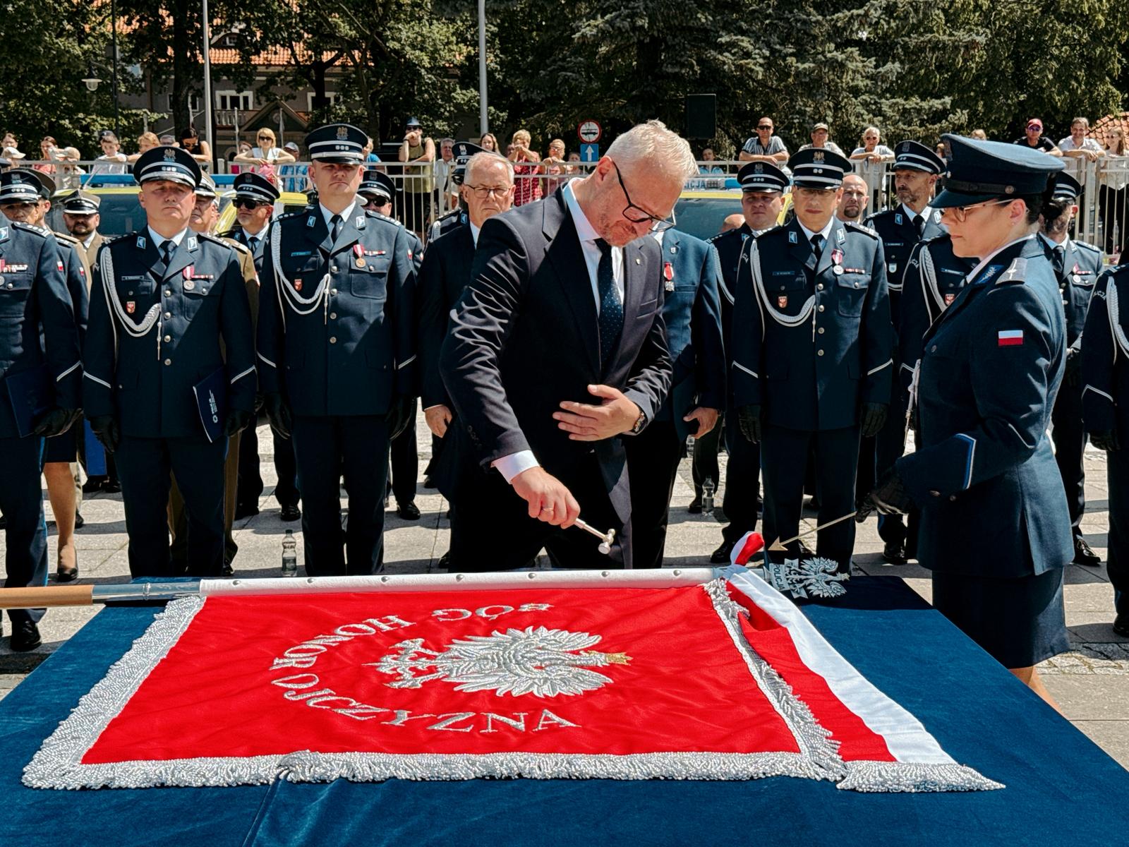 Nowo nadany sztandar to wyraz społecznego uznania dla codziennej pracy funkcjonariuszy i symbol ich odpowiedzialnej roli w życiu publicznym.