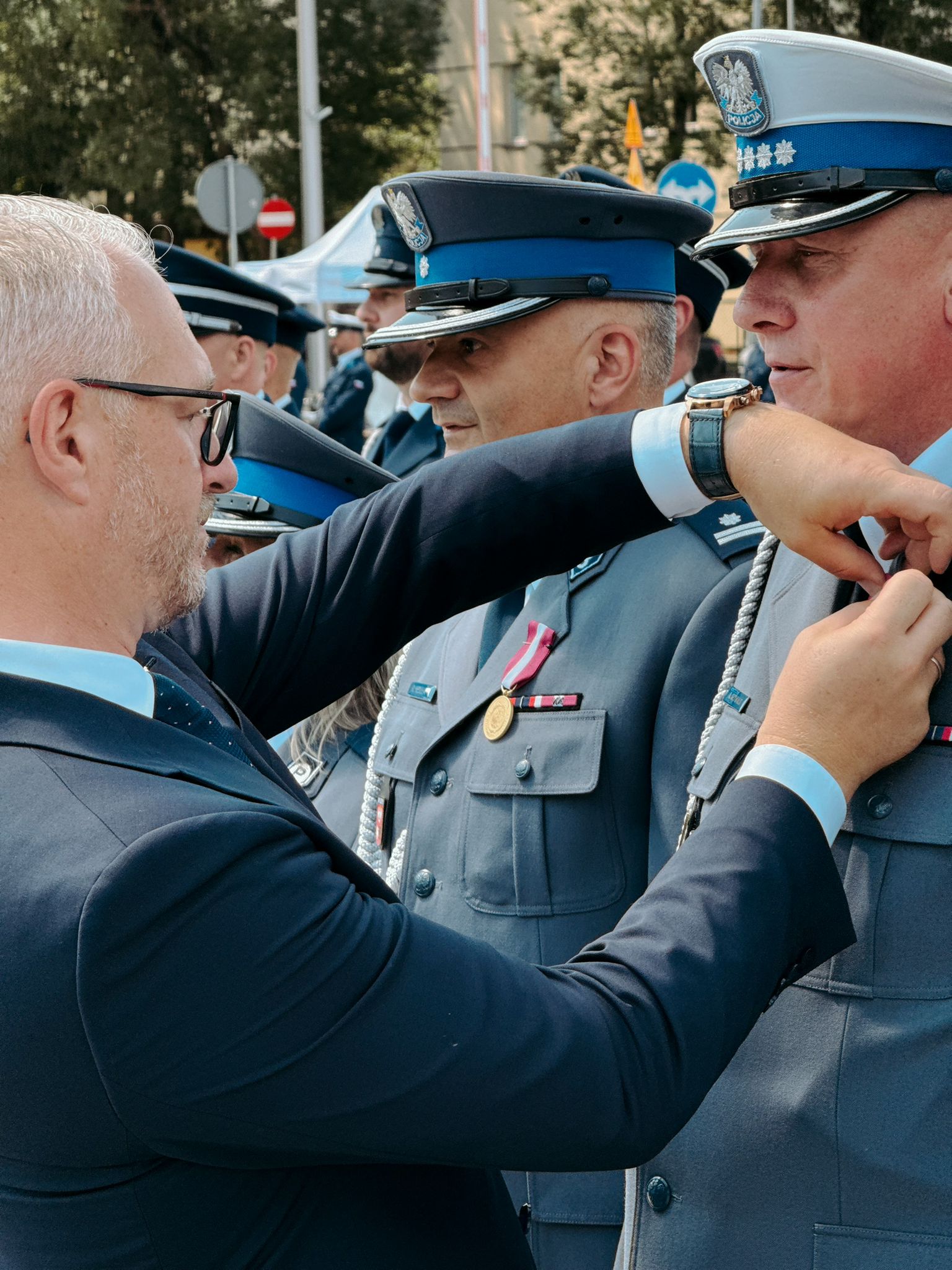 Podczas ceremonii Wojewoda Warmińsko-Mazurski Radosław Król wręczył odznaczenia funkcjonariuszkom i funkcjonariuszom szczególnie zasłużonym w służbie. W imieniu społeczeństwa wojewoda podziękował wszystkim policjantom za codzienną, wymagającą służbę na rzecz bezpieczeństwa publicznego.