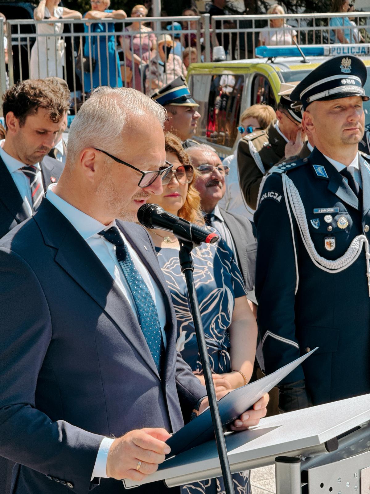 Służba w Policji to nie tylko zawód – to wybór stylu życia. To gotowość do działania zawsze, gdy społeczeństwo tego potrzebuje. Dzisiejszy sztandar to symbol zaufania, odpowiedzialności i zaszczytu. Dziękuję za to, że każdego dnia stoicie na straży bezpieczeństwa mieszkańców naszego regionu.