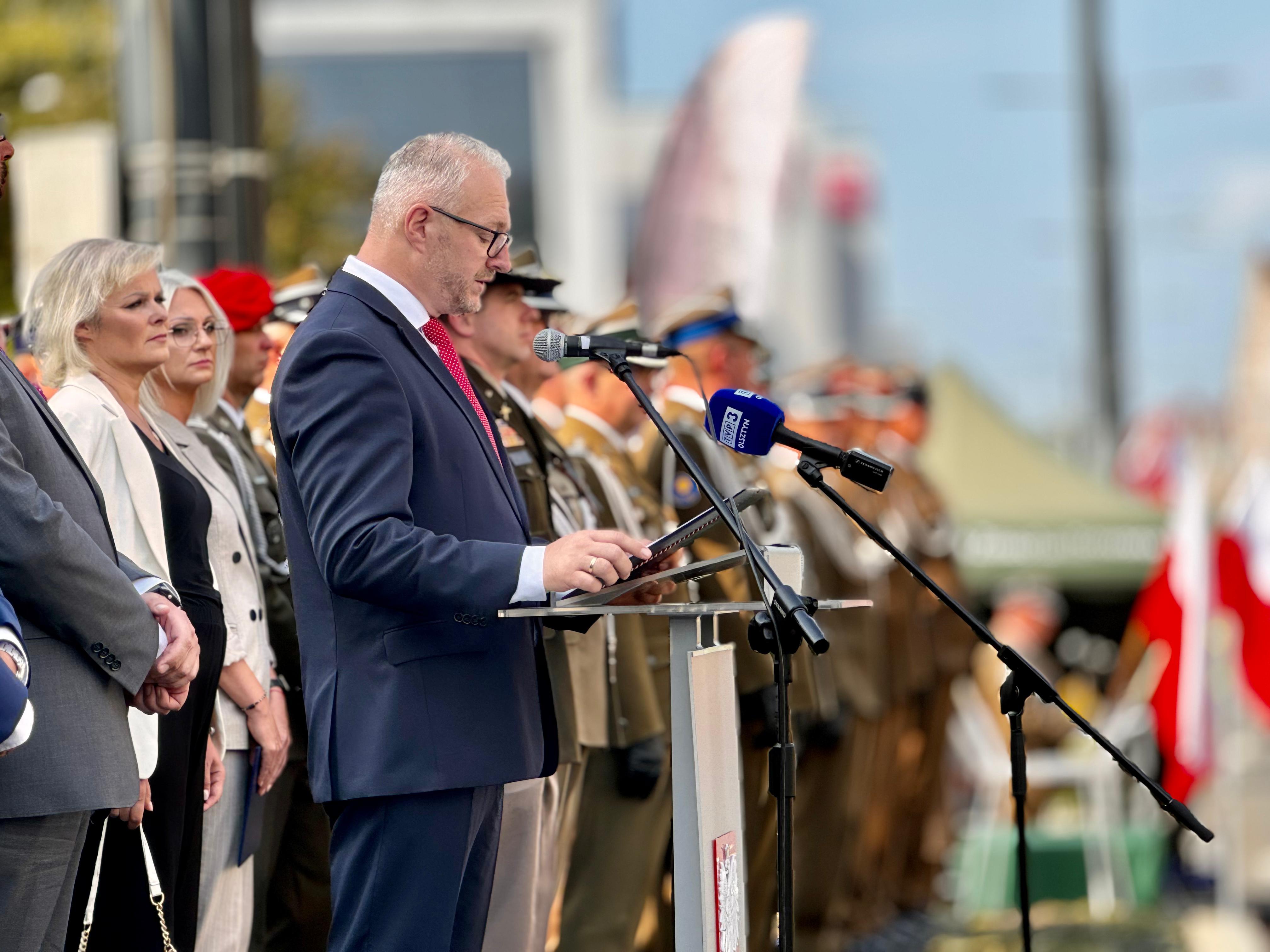 Jednoczymy się dziś wokół munduru, bo nasza historia wielokrotnie pokazywała, że zjednoczeni jesteśmy zdolni do rzeczy wielkich. Wspominamy dziś Bitwę Warszawską z 1920 roku, kiedy to pod przywództwem premiera Wincentego Witosa, premiera naszej wolności, naród zjednoczył się w obronie Ojczyzny, zatrzymując bolszewicką nawałę. To wtedy, dzięki jedności i determinacji, Polska obroniła swoją suwerenność. To był prawdziwy „Cud nad Wisłą”, który przypomina nam, jak wielką siłę ma zjednoczony naród. Dziękuję wszystkim Państwu za dzisiejszą jedność. Składam podziękowania wszystkim zaangażowanym w organizację naszych obchodów. Dziękuję żołnierzom, dziękuję funkcjonariuszom Straży Granicznej, dziękuję naszym sojusznikom z NATO oraz mieszkańcom Warmii i Mazur. Wspólnie budujemy dom, w którym każdy z nas może czuć się bezpiecznie.