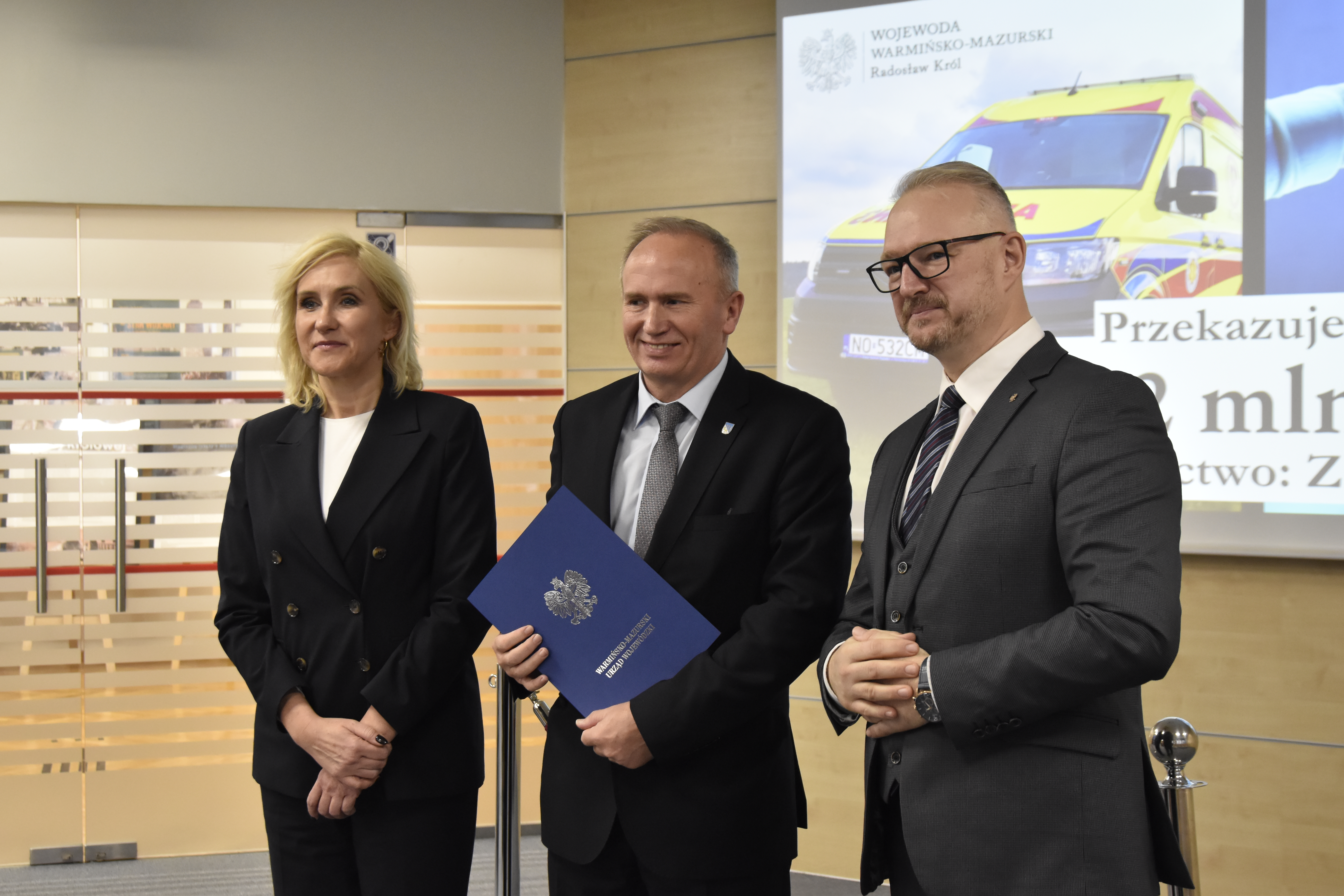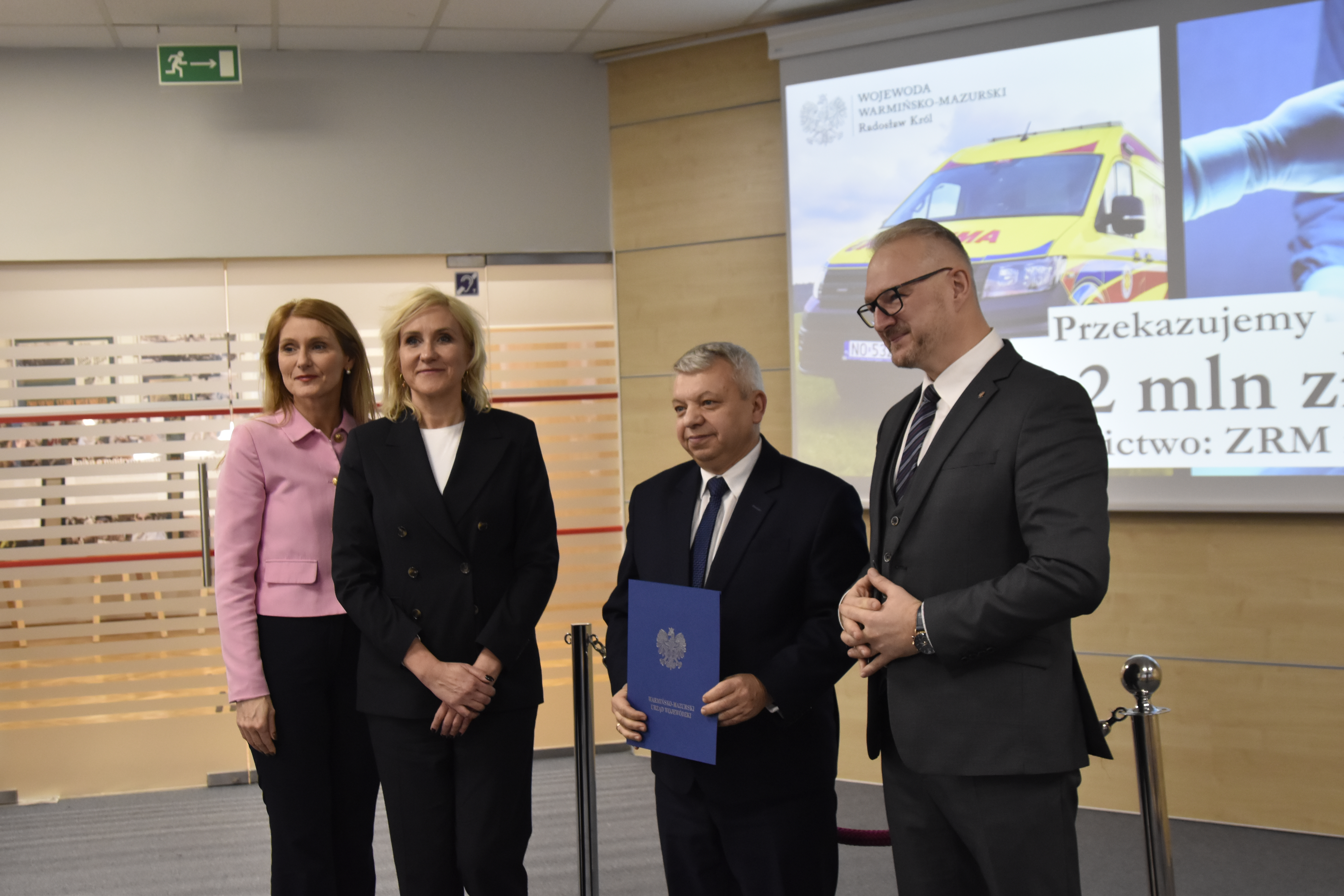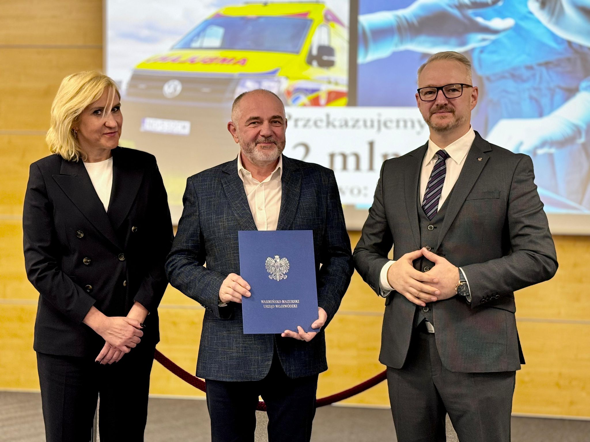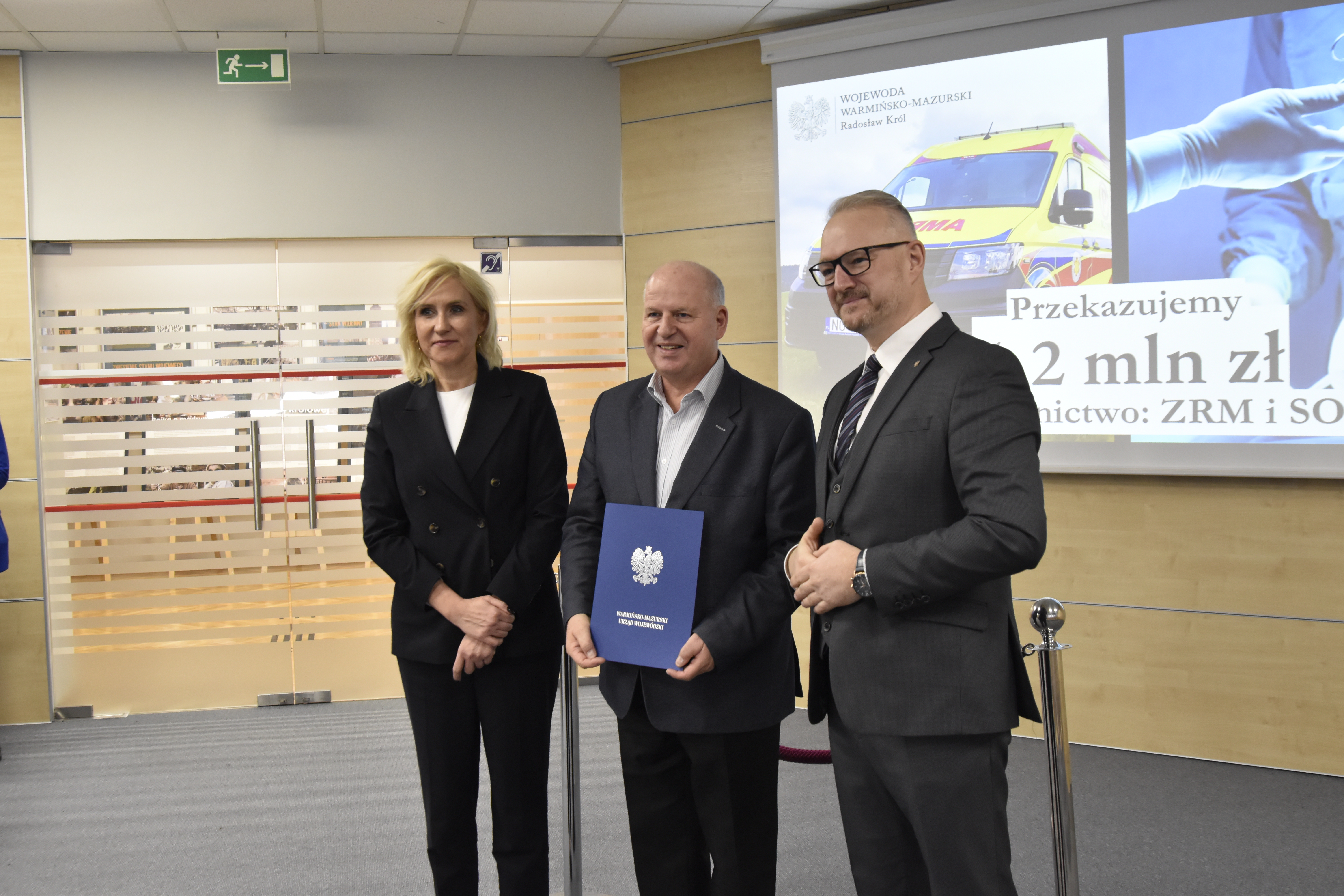 Wojewoda Radosław Król oraz Poseł na Sejm RP Urszula Pasławska przekazali dofinansowanie na rozwój zespołów ratownictwa medycznego (ZRM) i szpitalnych oddziałów ratunkowych (SOR) w województwie warmińsko-mazurskim na rok 2024. Łączna wartość wsparcia wynosi 5 839 197,7 zł.