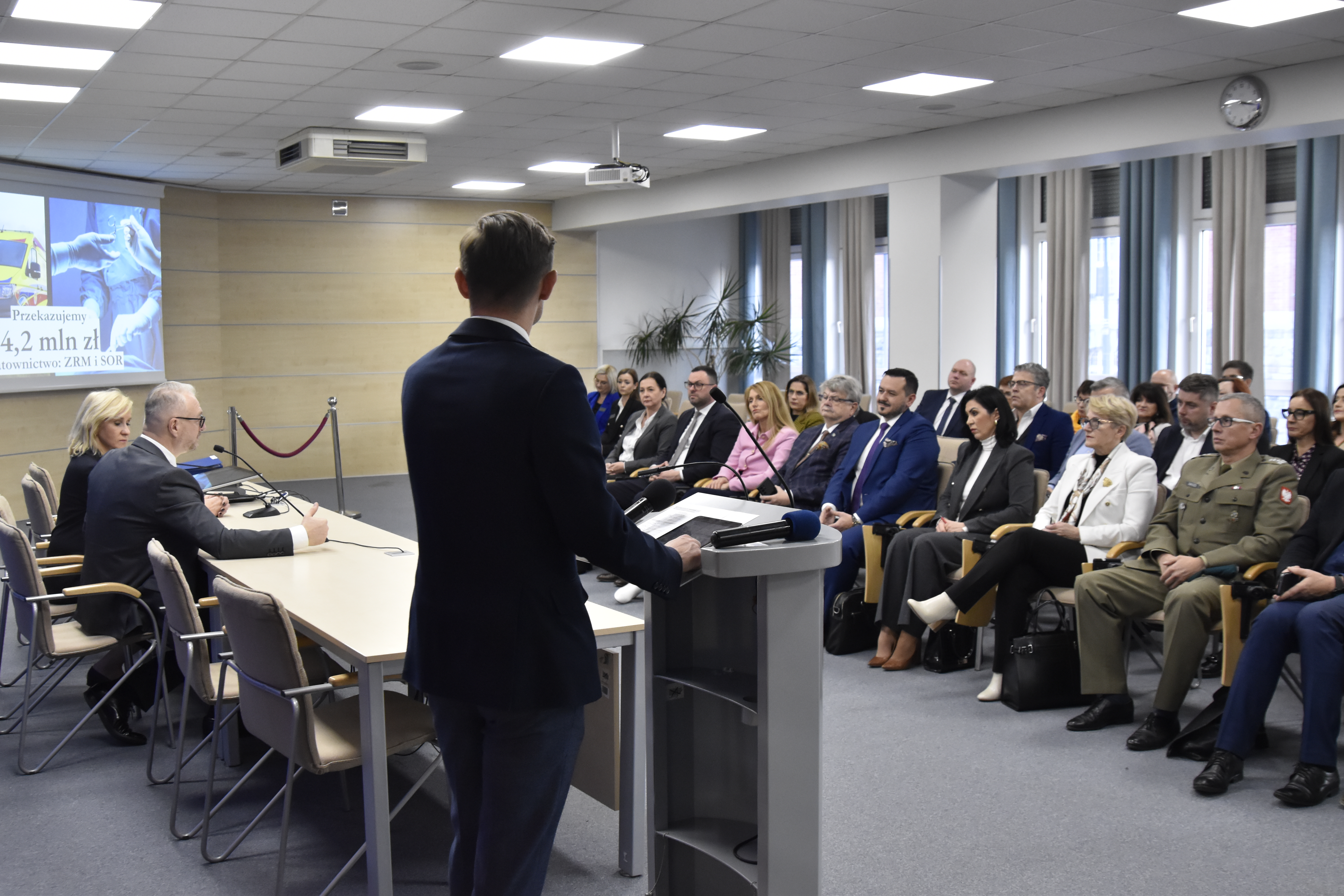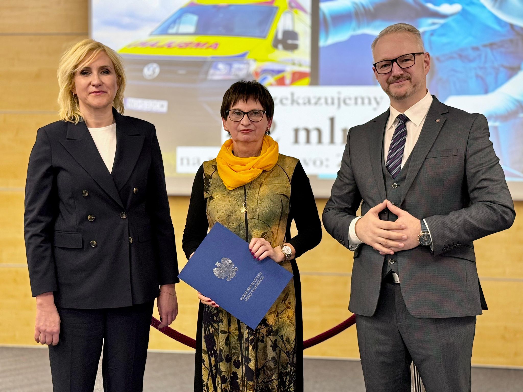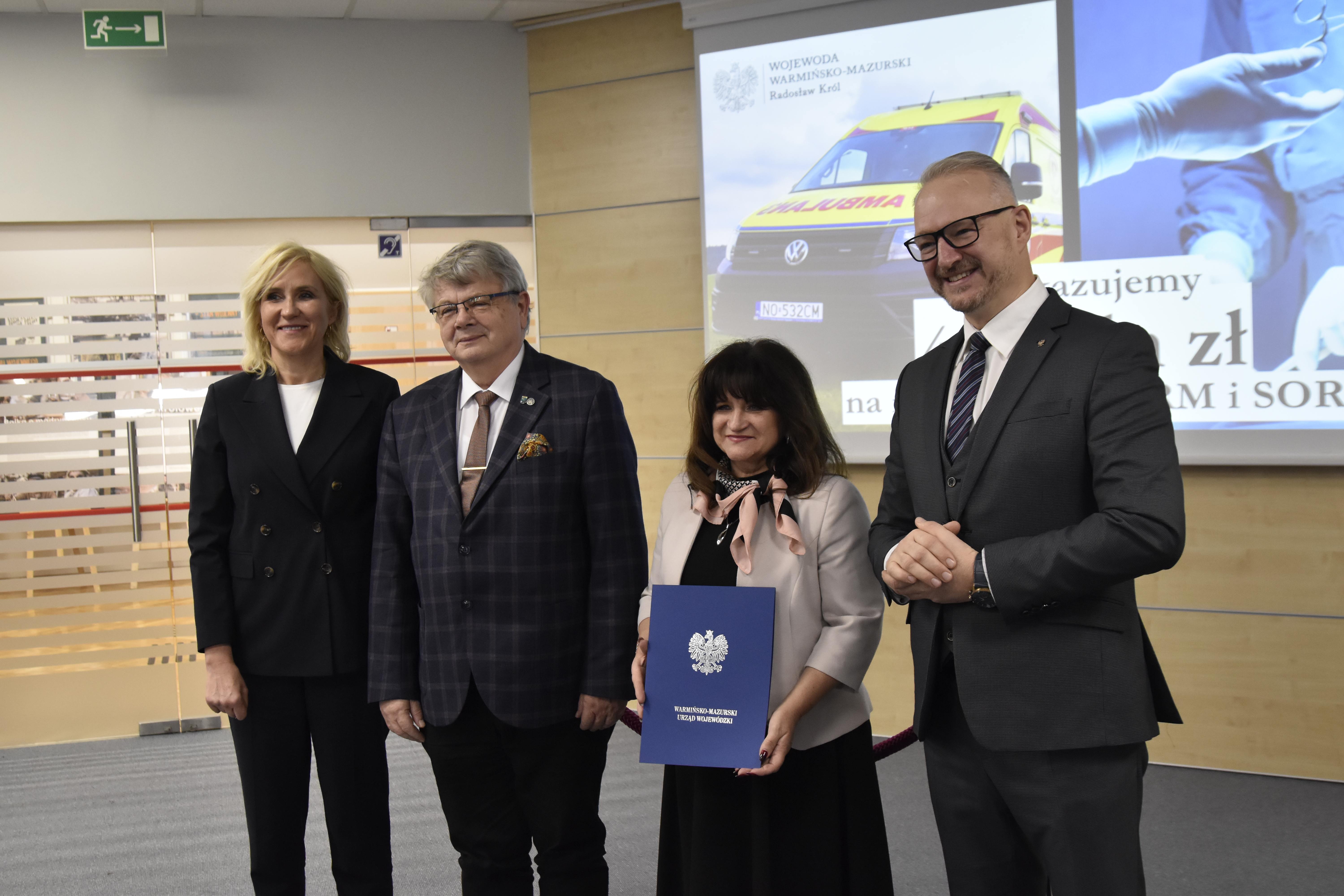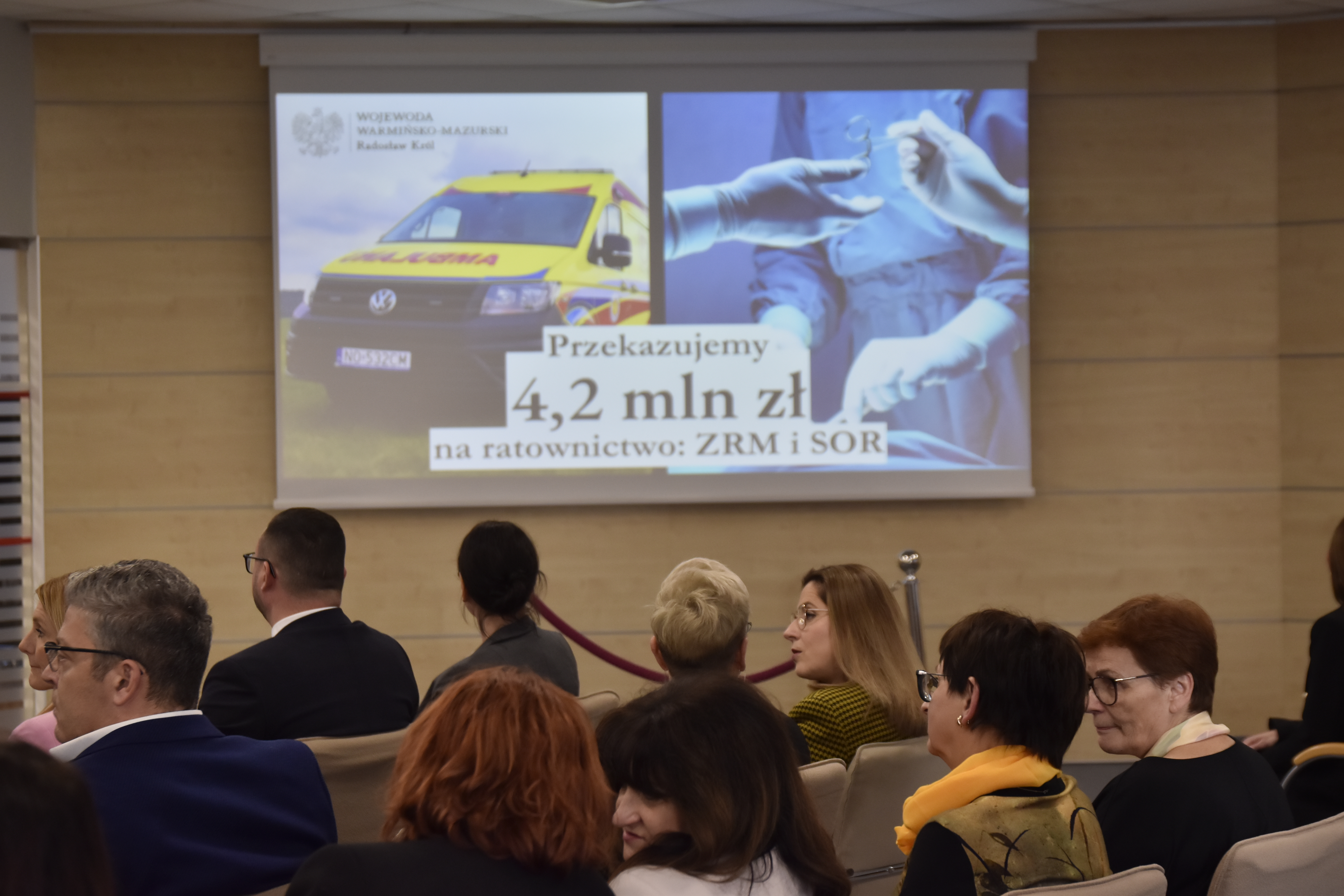 Wojewoda Radosław Król oraz Poseł na Sejm RP Urszula Pasławska przekazali dofinansowanie na rozwój zespołów ratownictwa medycznego (ZRM) i szpitalnych oddziałów ratunkowych (SOR) w województwie warmińsko-mazurskim na rok 2024. Łączna wartość wsparcia wynosi 5 839 197,7 zł.