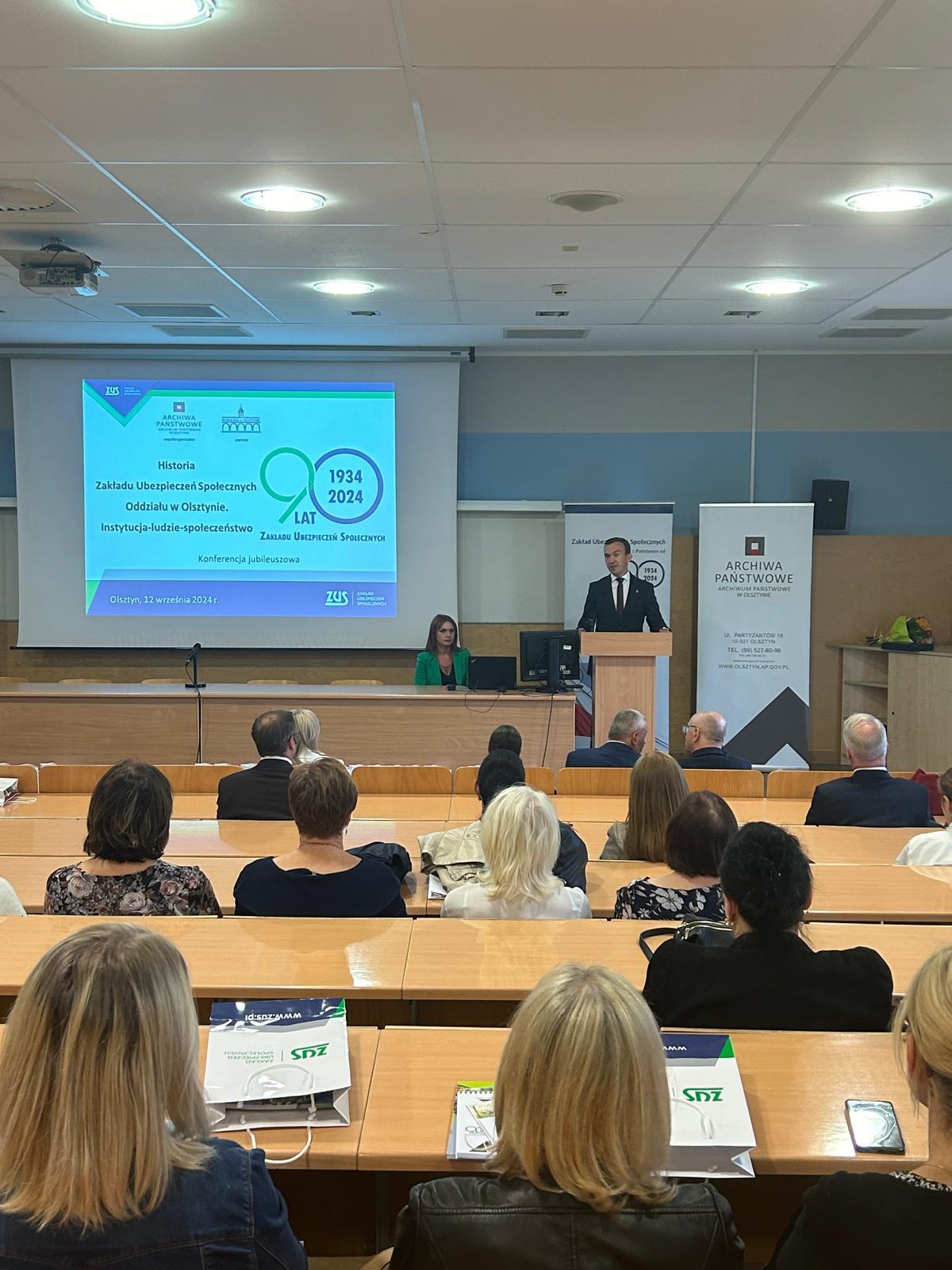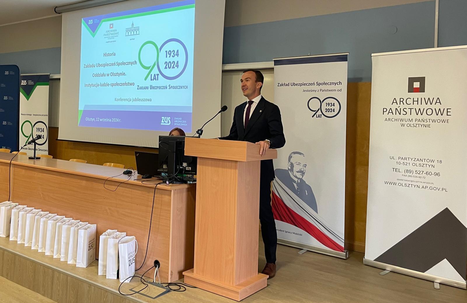 Zakład Ubezpieczeń Społecznych powstał w 1934 roku po kilkuletnim procesie reformowania systemu ubezpieczeń społecznych na mocy ustawy z dnia 28 marca 1933 r. o ubezpieczeniu społecznym i rozporządzenia prezydenta RP Ignacego Mościckiego z dnia 24 października 1934 roku o zmianie ustawy o ubezpieczeniu społecznym. Dziś w Centrum Konferencyjnym Uniwersytetu Warmińsko-Mazurskiego w Olsztynie odbyła się uroczysta konferencja jubileuszowa z okazji 90-lecia Zakładu Ubezpieczeń Społecznych. Dyrektor Oddziału ZUS w Olsztynie - Aneta Wiecha-Wasiluk powitała zebranych na wydarzeniu gości.