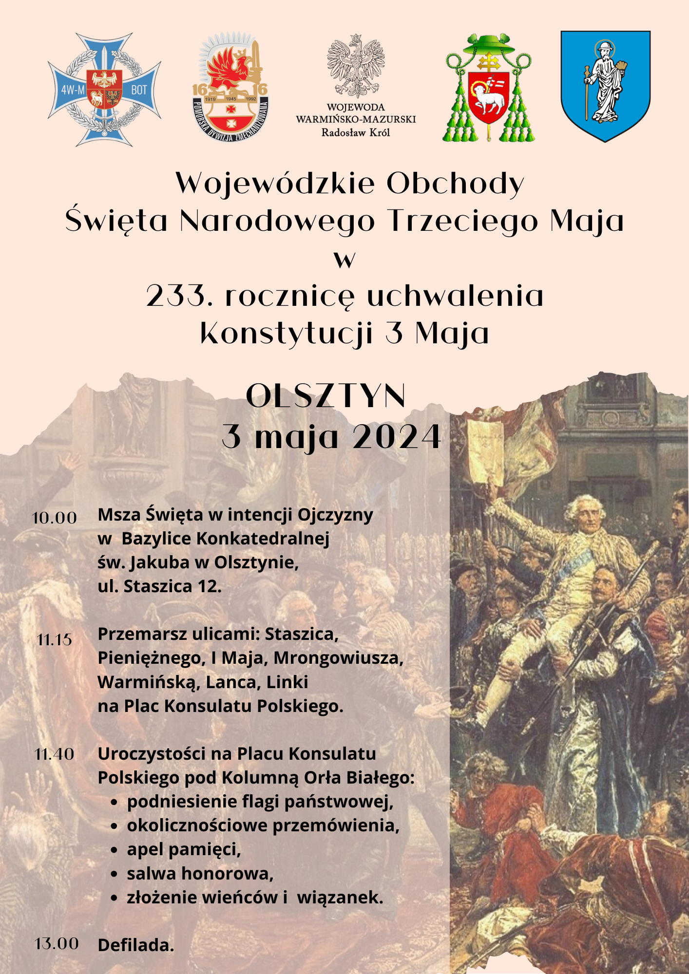 Zapraszamy na Wojewódzkie Obchody Święta Narodowego Trzeciego Maja w 233. rocznicę uchwalenia Konstytucji 3 Maja.
