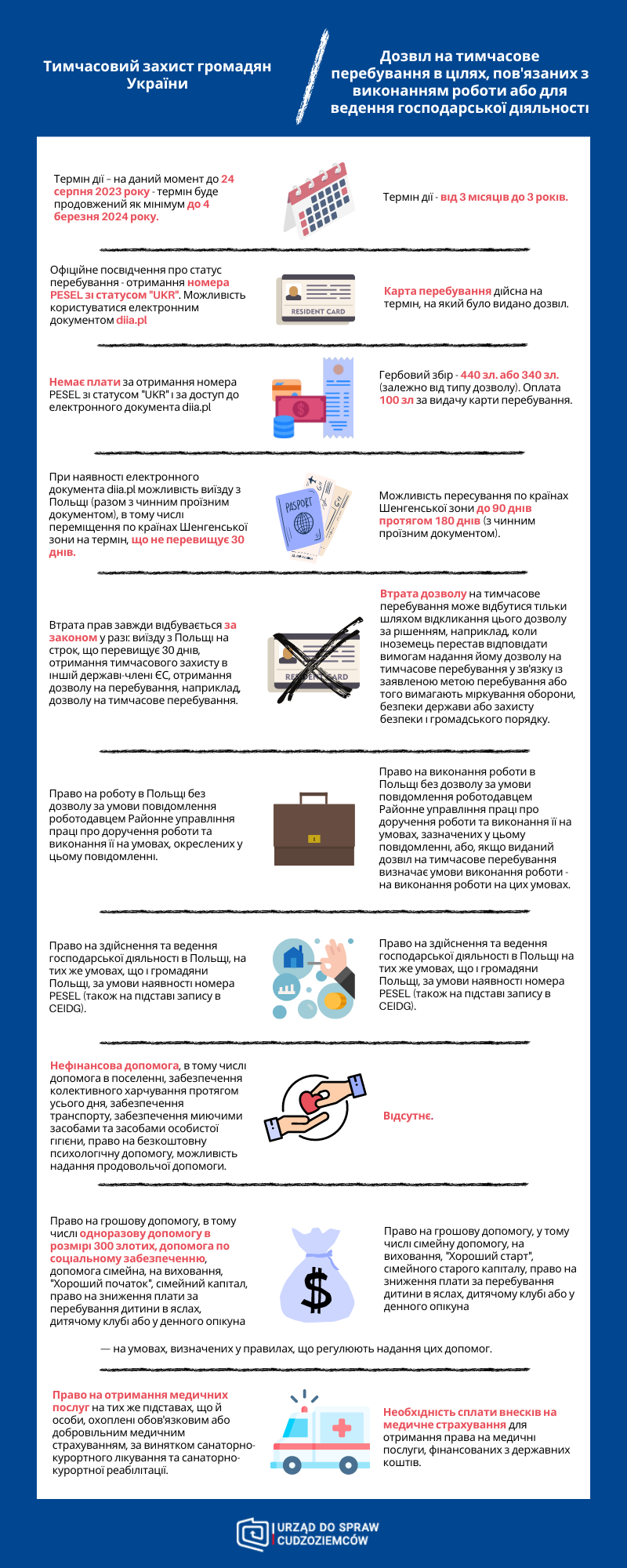 - Udzielenie zezwolenia na pobyt czasowy spowoduje zakończenie korzystania z ochrony czasowej i zapisów ustawy o pomocy obywatelom Ukrainy w związku z konfliktem zbrojnym na terytorium tego państwa.