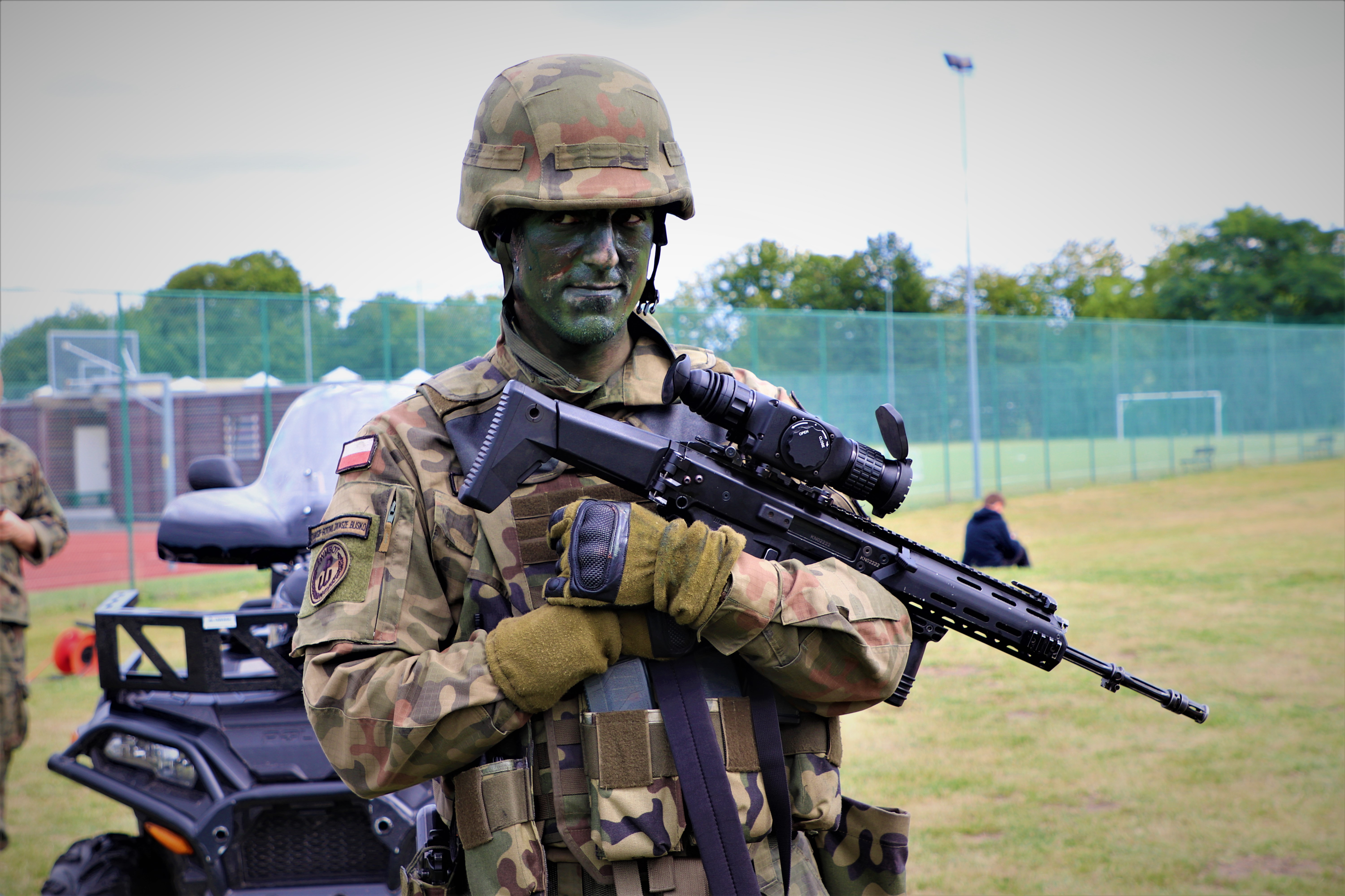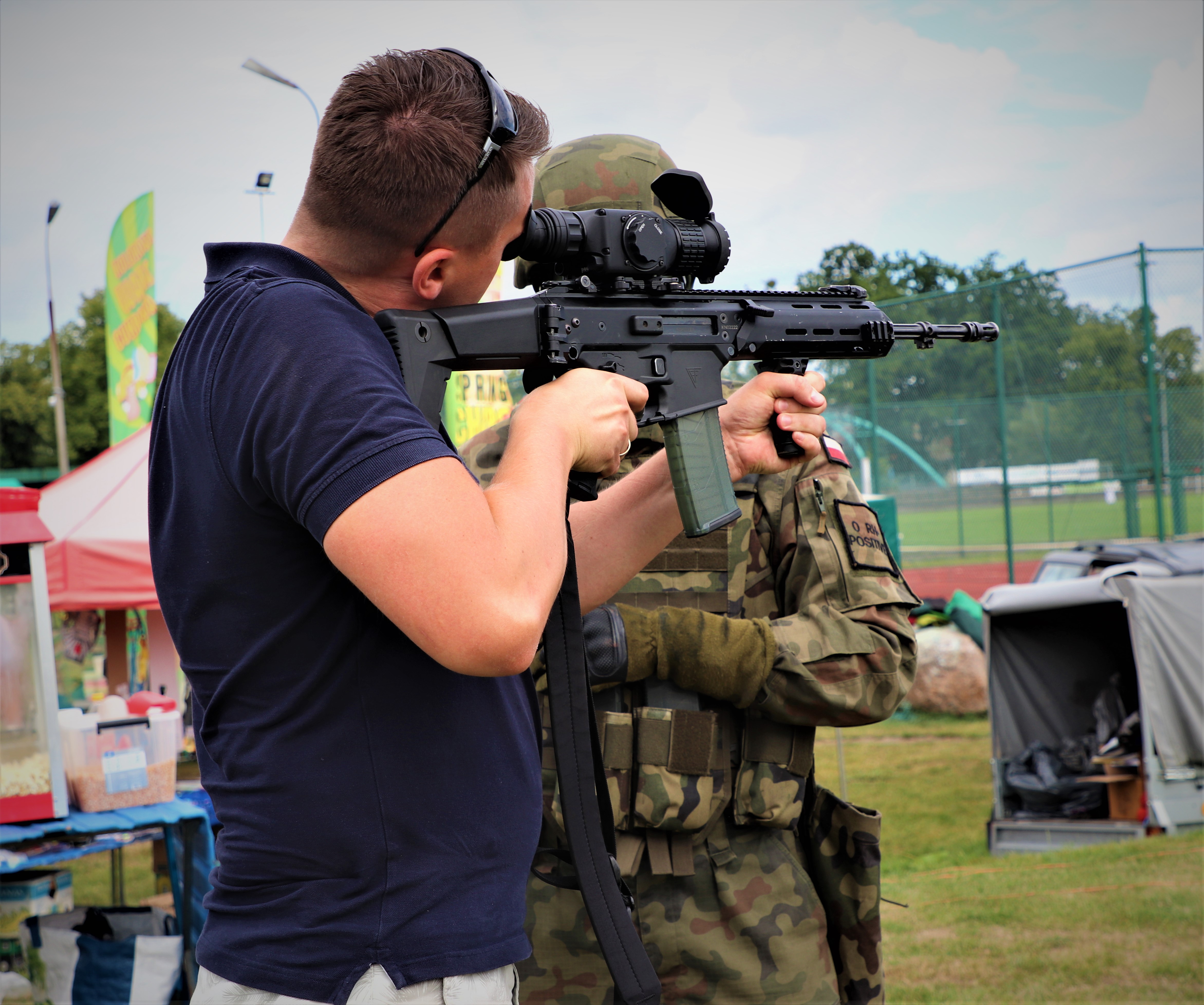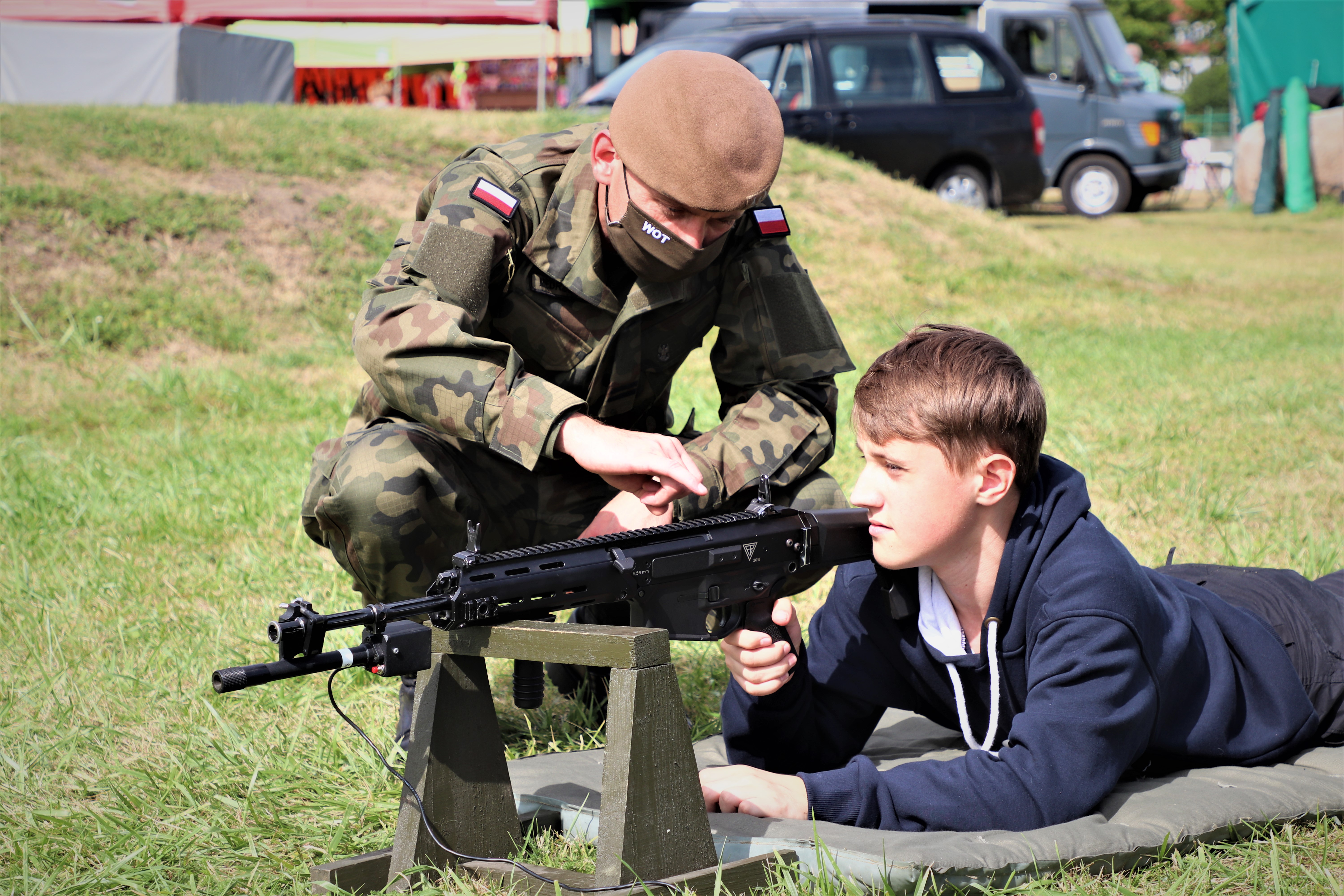 Podczas wydarzenia plenerowego "Baj Baj Wakacje 2020" mieszkańcy Braniewa i odwiedzający miasto turyści, mieli możliwość przyjrzenia się z bliska i sprawdzenia jakim sprzętem na co dzień dysponują Wojska Obrony Terytorialnej. Żołnierze 43 Batalionu Lekkiej Piechoty, wchodzącego w skład 4. Warmińsko-Mazurskiej Brygady Obrony Terytorialnej, zaprezentowali sprzęt na którym szkolą się w trakcie pełnienia służby. Obejrzeć można było m.in. karabinek MSBS Grot, karabin snajperski SAKO TRG M10, Celownik Termowizyjny SCT RUBIN, quad Polaris, motocykl, czy stację pogodową. Wśród przygotowanych atrakcji można było sprawdzić swoją celność na tzw. Cyklopie, postrzelać z paintballa, a przy okazji wypełnić wniosek rekrutacyjny i dołączyć do służących w braniewskim batalionie. Chętnych nie brakowało !