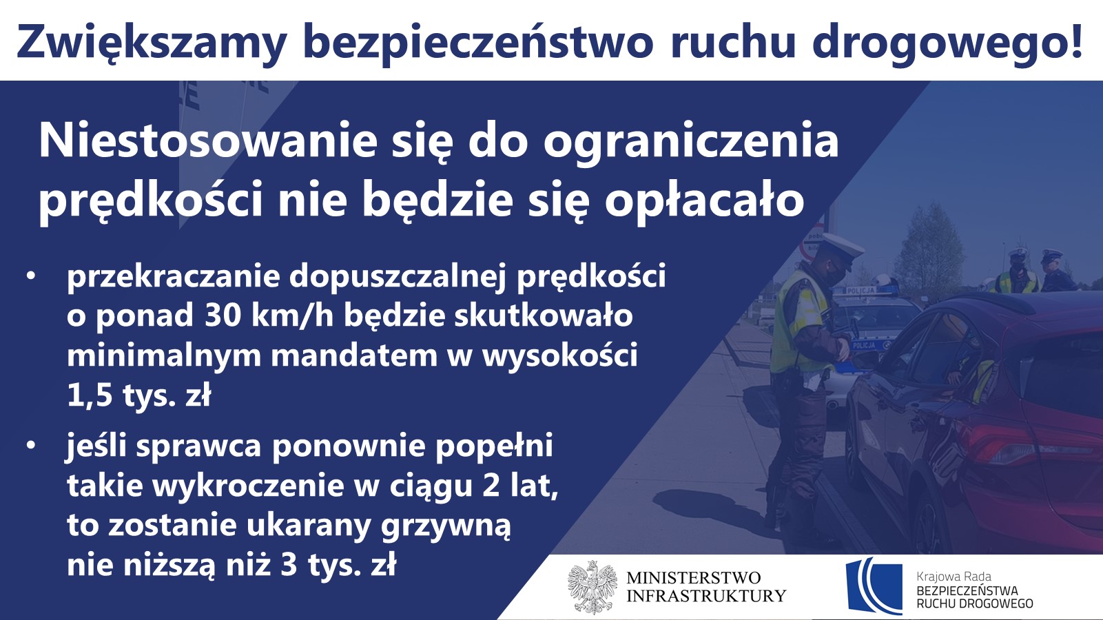 Przekraczanie dopuszczalnej prędkości o ponad 30 km/h będzie skutkowało minimalnym mandatem w wysokości 1,5 tys. zł, niezależnie od faktu, czy naruszenie zostało stwierdzone w obszarze zabudowanym czy też poza tym obszarem. Jeśli sprawca ponownie popełni takie wykroczenie w ciągu 2 lat, to zostanie ukarany grzywną nie niższą niż 3 tys. zł.
