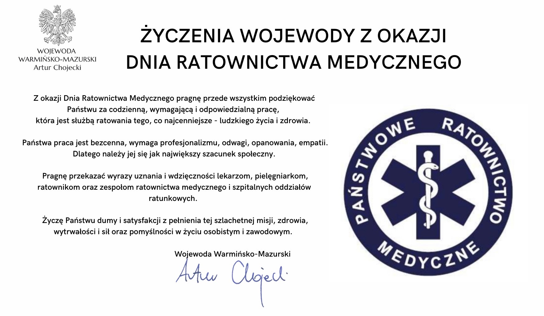 Życzenia Wojewody Warmińsko-Mazurskiego z okazji Dnia Ratownictwa Medycznego