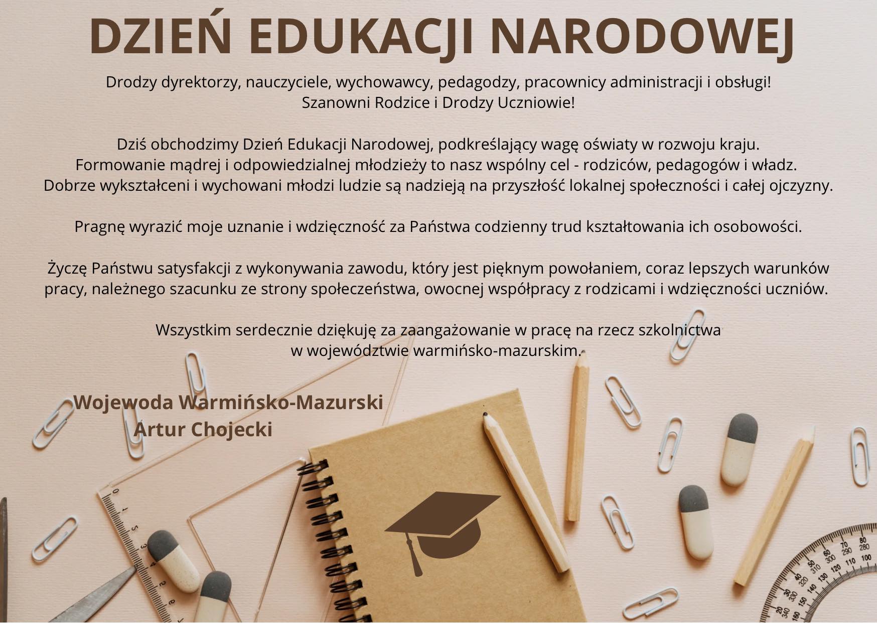 Życzenia Wojewody Warmińsko-Mazurskiego z okazji Dnia Edukacji Narodowej