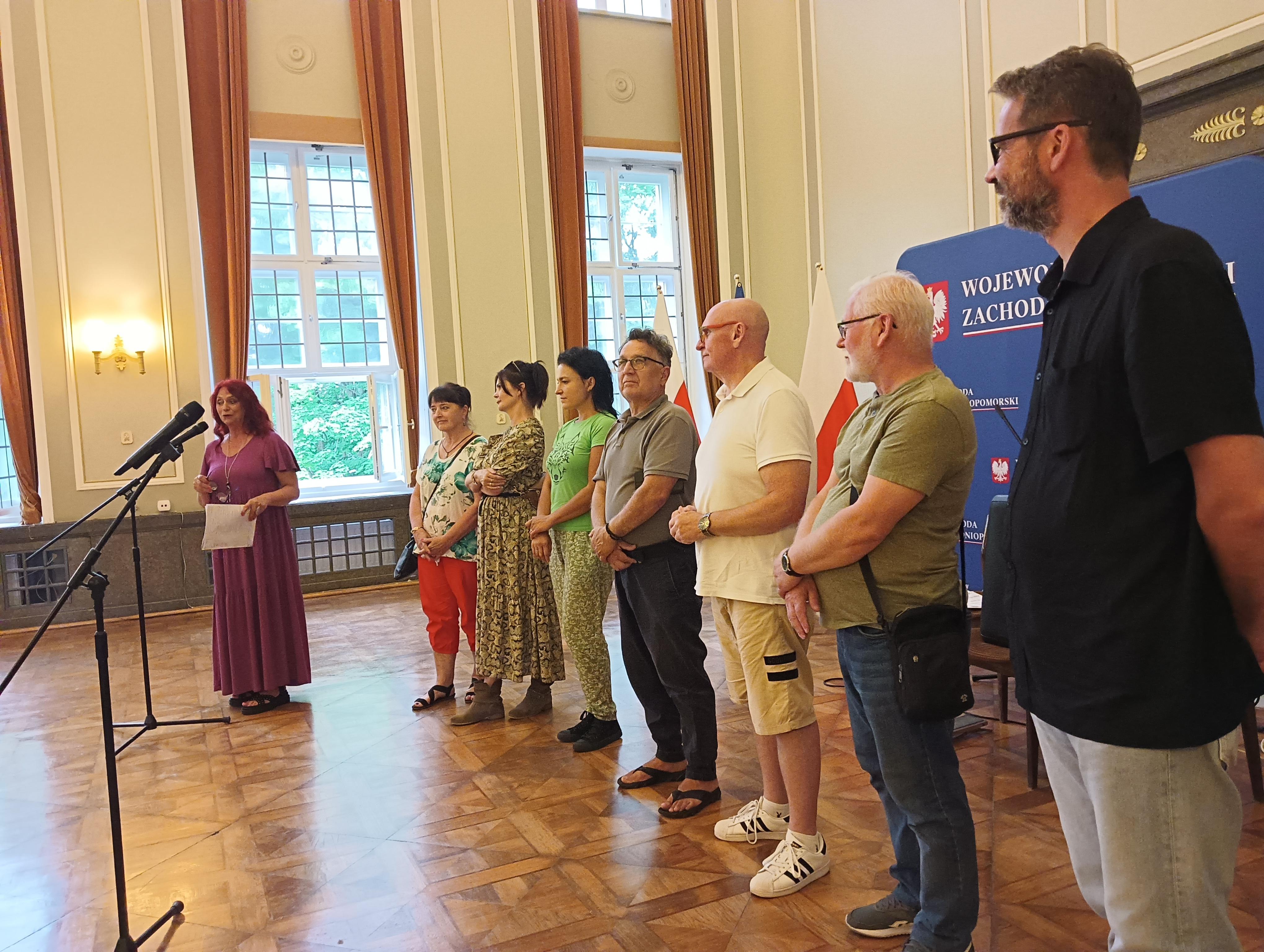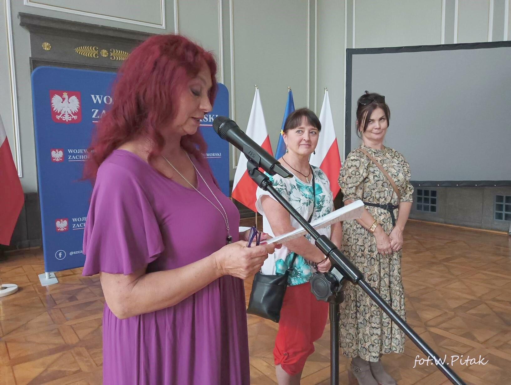 Po powitaniach i wspaniale wykonanym koncercie gitarowym, głos zabrała prof. Ewa Miśkiewicz-Żebrowska, która opowiedziała historię Międzynarodowych Plenerów Malarskich w Osiekach oraz przedstawiła obecnych artystów.