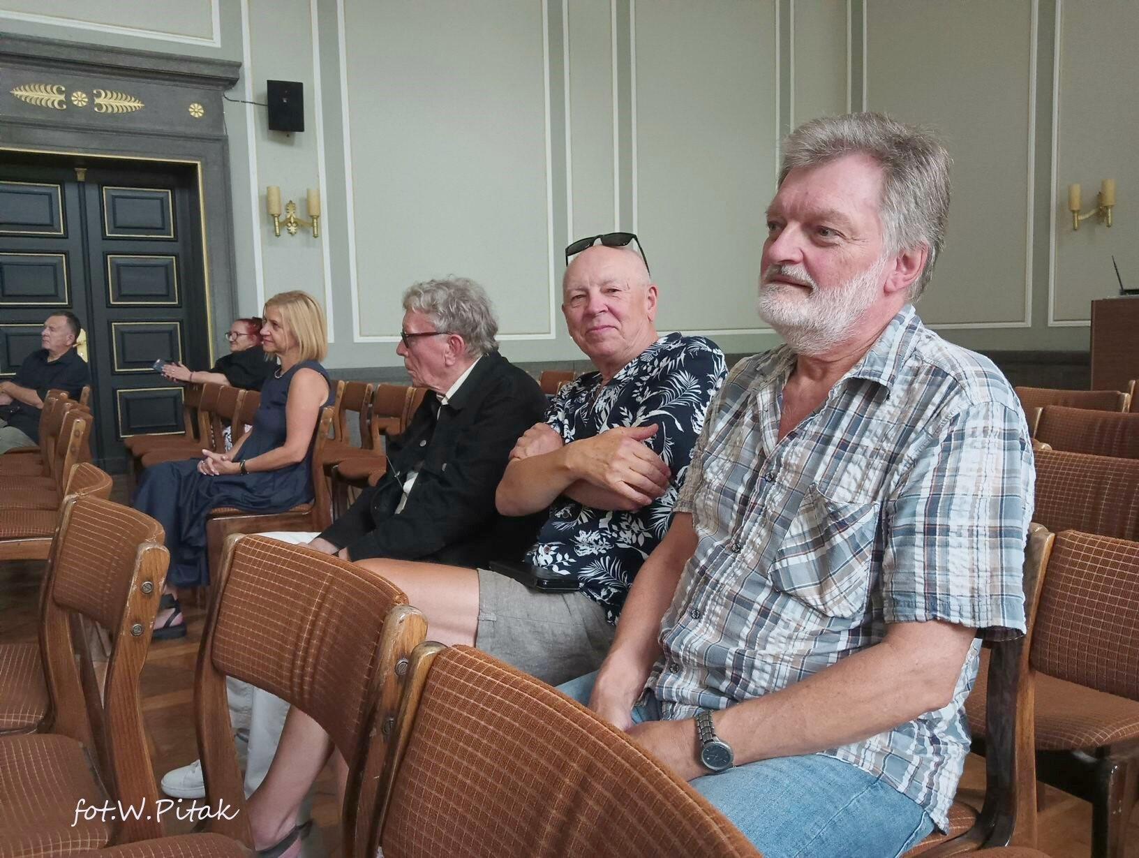 W następnej kolejności - prezeski organizacji społeczno-twórczych i związków artystów plastyków: Ewa Miśkiewicz- Żebrowska, Wiesława Kurowska , Elżbieta Kalińska i Teresa Labisch. Szczególnie serdecznie została powitana mentorka kultury koszalińskiej Bożena Kaczmarek i artysta-muzyk Dariusz Schmidt, który na gitarze wykonał trzy utwory kompozytorów hiszpańskich.
