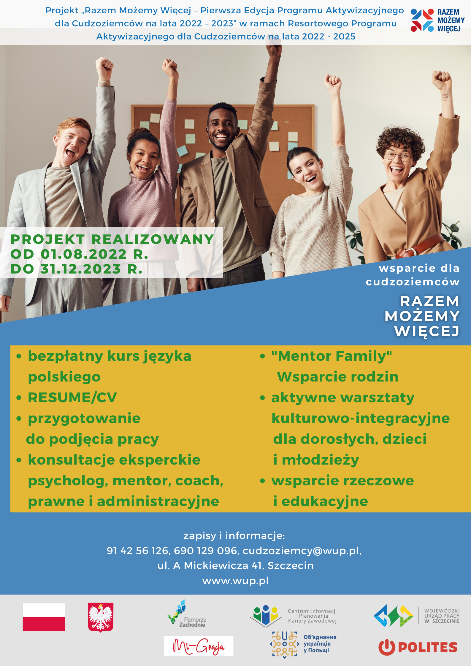 The project partners are: the Voivodeship Labor Office in Szczecin, the Mi-Gracja Association, the “POLITES” Association and the Szczecin branch of the Association of Ukrainians in Poland.